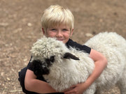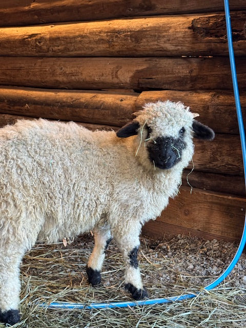 This hyper-local yarn is from Valais Blacknose sheep on a small family farm, spun at a mill in Port Orchard, Wa.