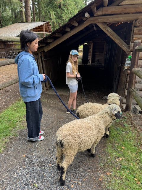 At Moongate Farm in Woodinville, Washington, we share our days with a cheerful menagerie—Valais Blacknose sheep, alpacas, donkeys, cows, horses, chickens, and ducks. Our VBSS-registered sheep trace their roots to Wild Rose Farm on Whidbey Island, and their luxurious fiber (along with our alpaca fiber) is spun into yarn by a wonderful mill in Port Orchard. Each skein begins with the animals we raise with care and ends as something we’re truly proud to share.