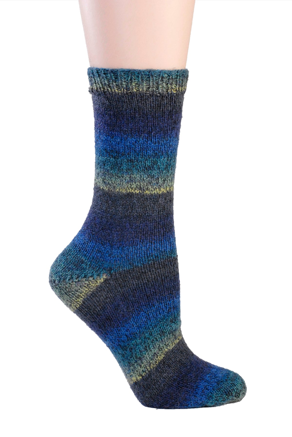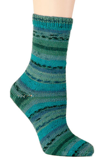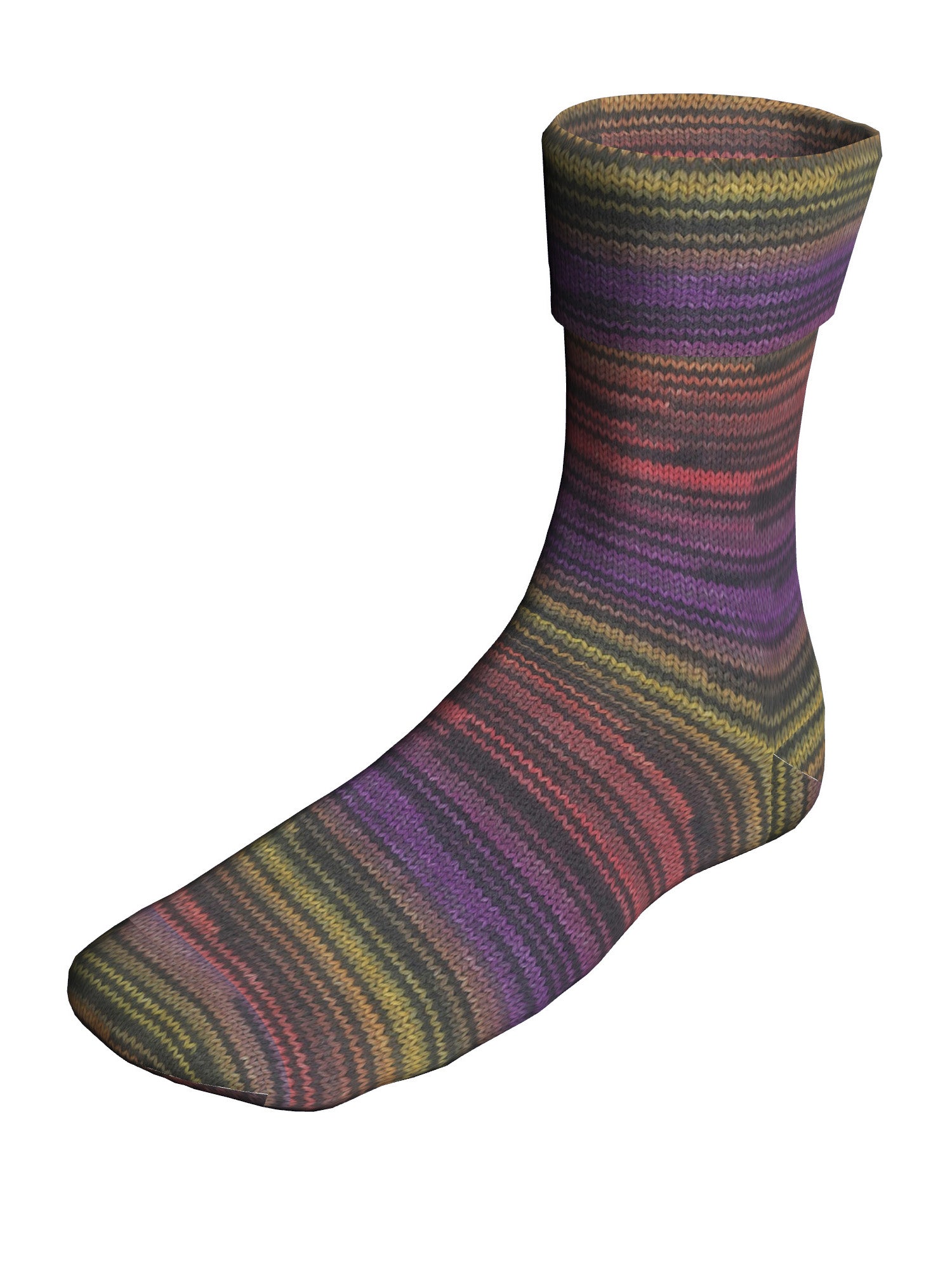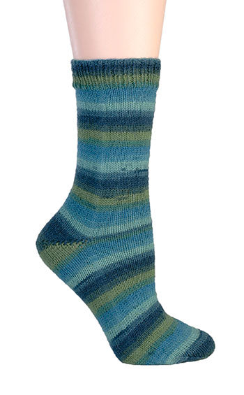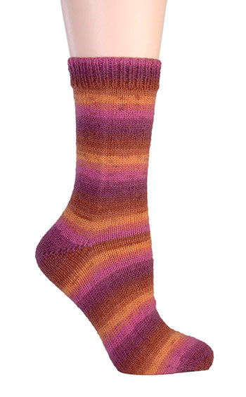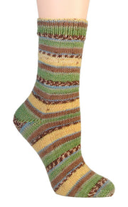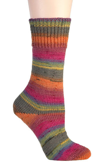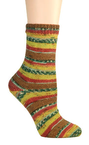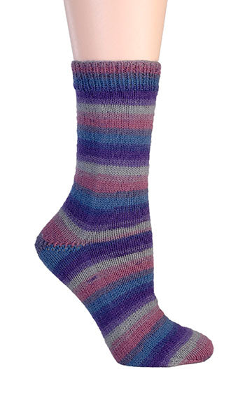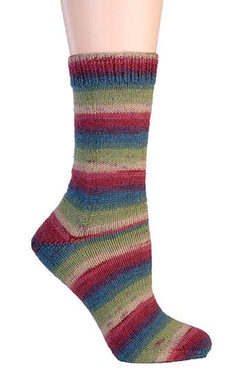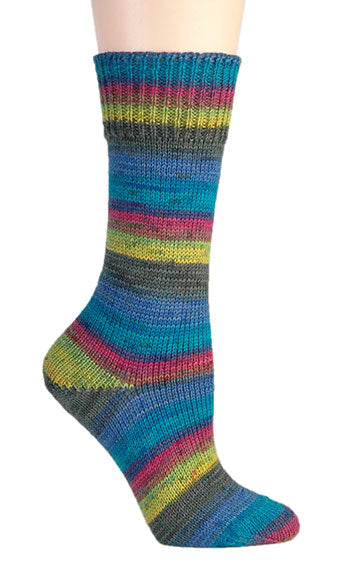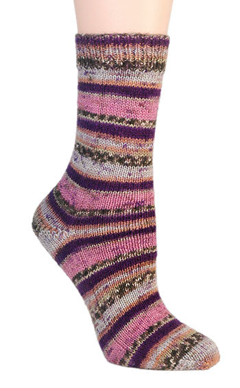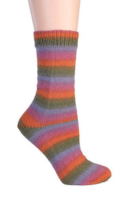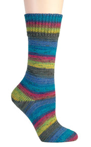 Berroco Sox is a superb woolen sock yarn that patterns all by itself as you knit your socks in the round. One 100 gram ball makes a pair. Choose from an assortment of engineered color patterns.