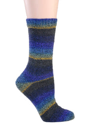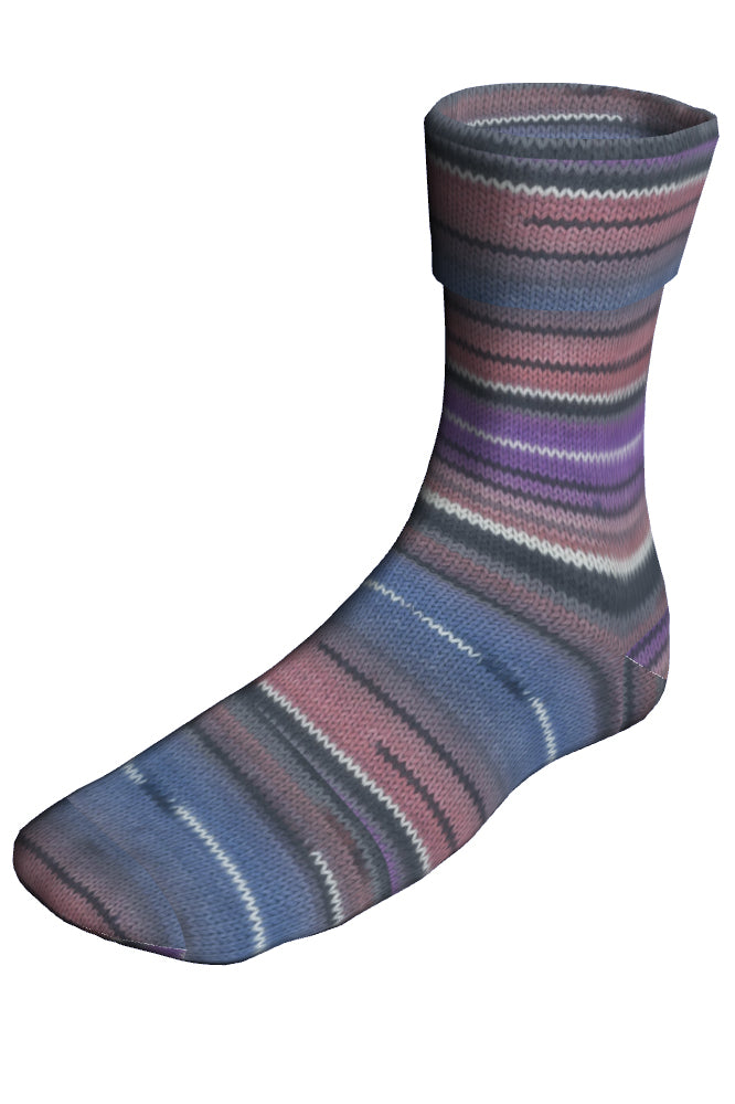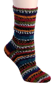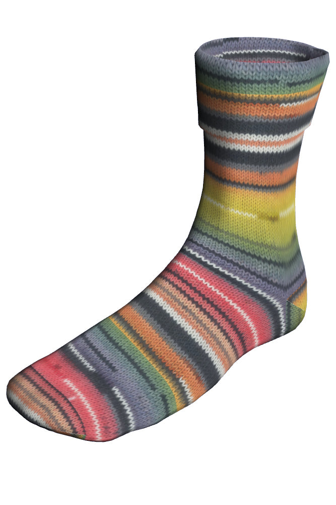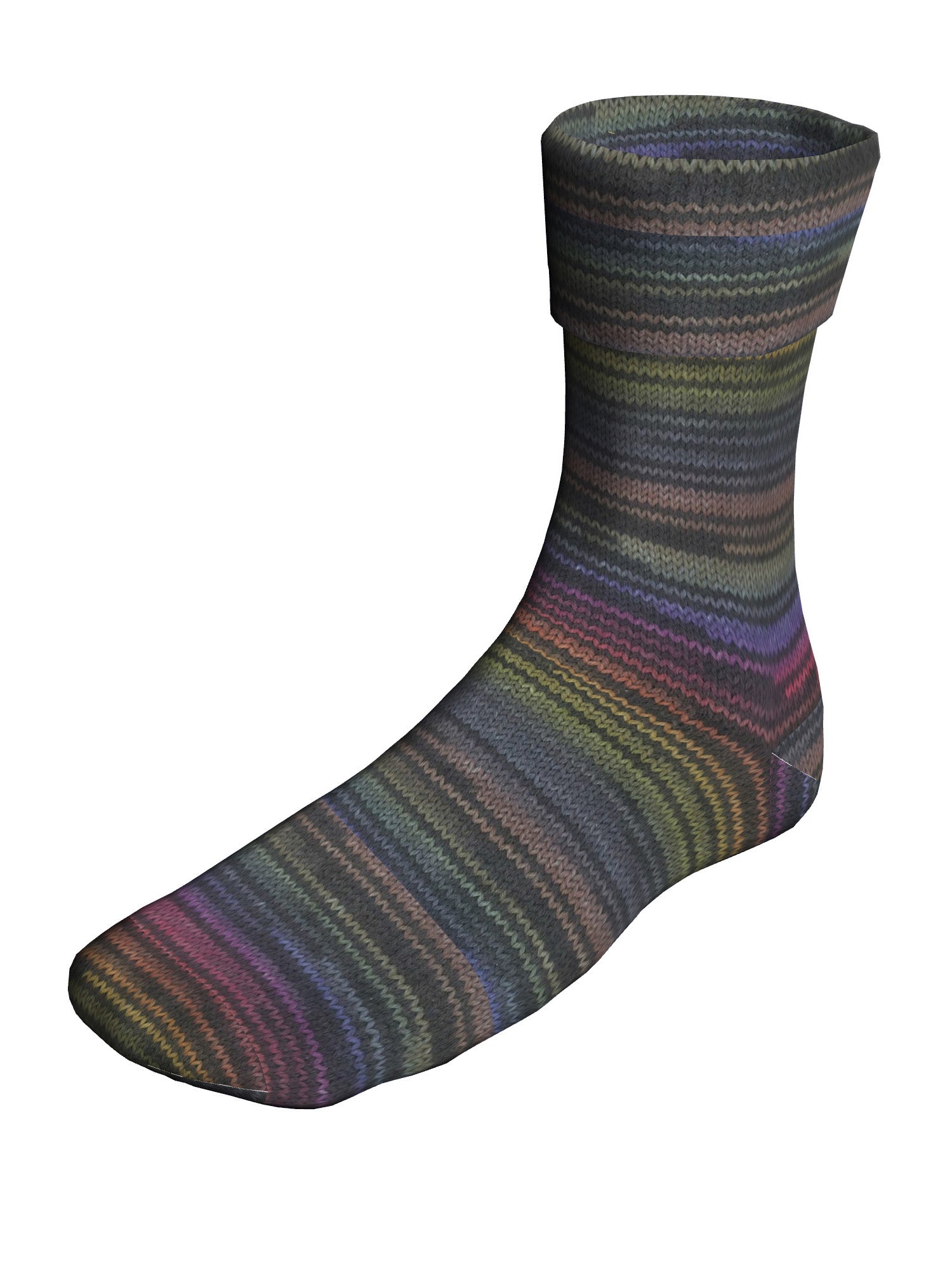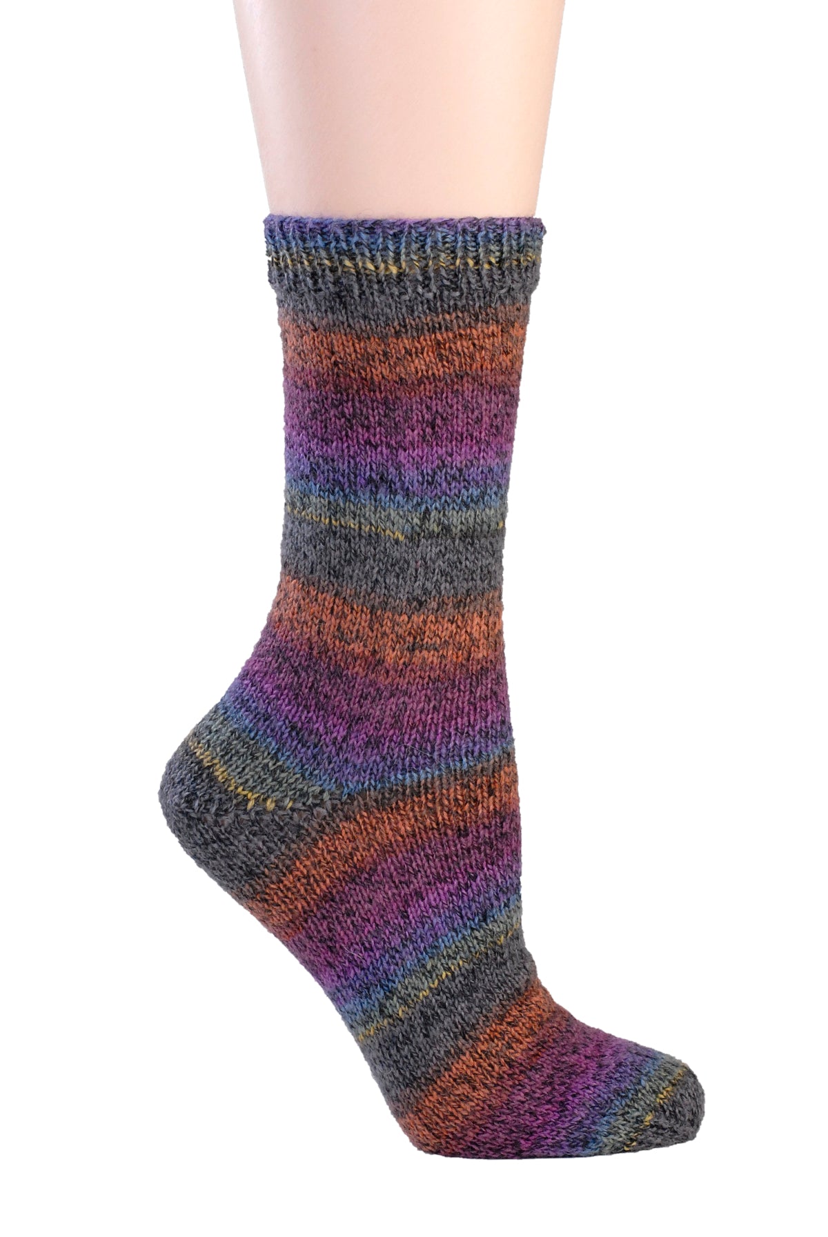 Berroco Sox is a superb woolen sock yarn that patterns all by itself as you knit your socks in the round. One 100 gram ball makes a pair. Choose from an assortment of engineered color patterns.