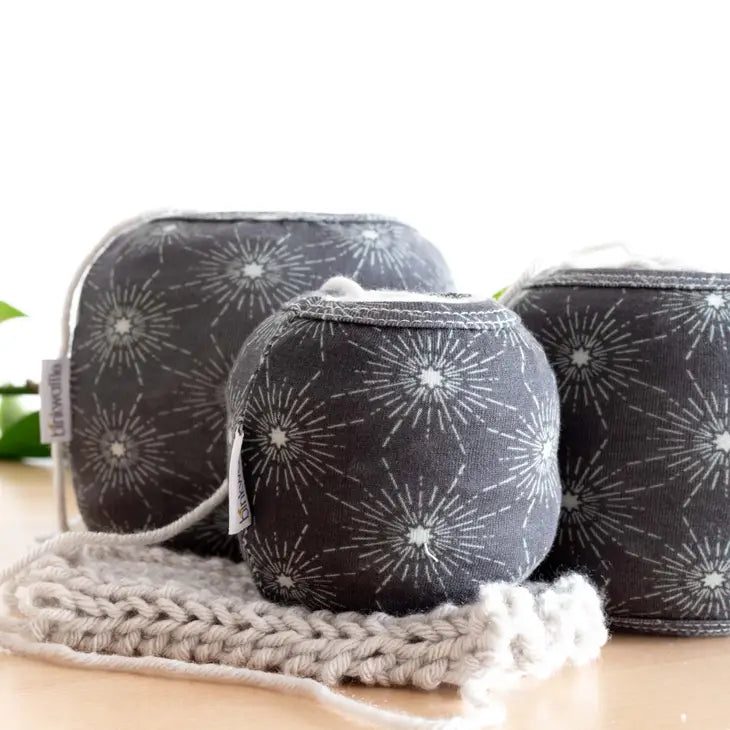 Stop those tangles before they start. Fit one over your center-pull cake of yarn and keep your yarn nicely wound for knitting, crochet, and more. Made with 4-way stretch jersey for bounce-back-ability.