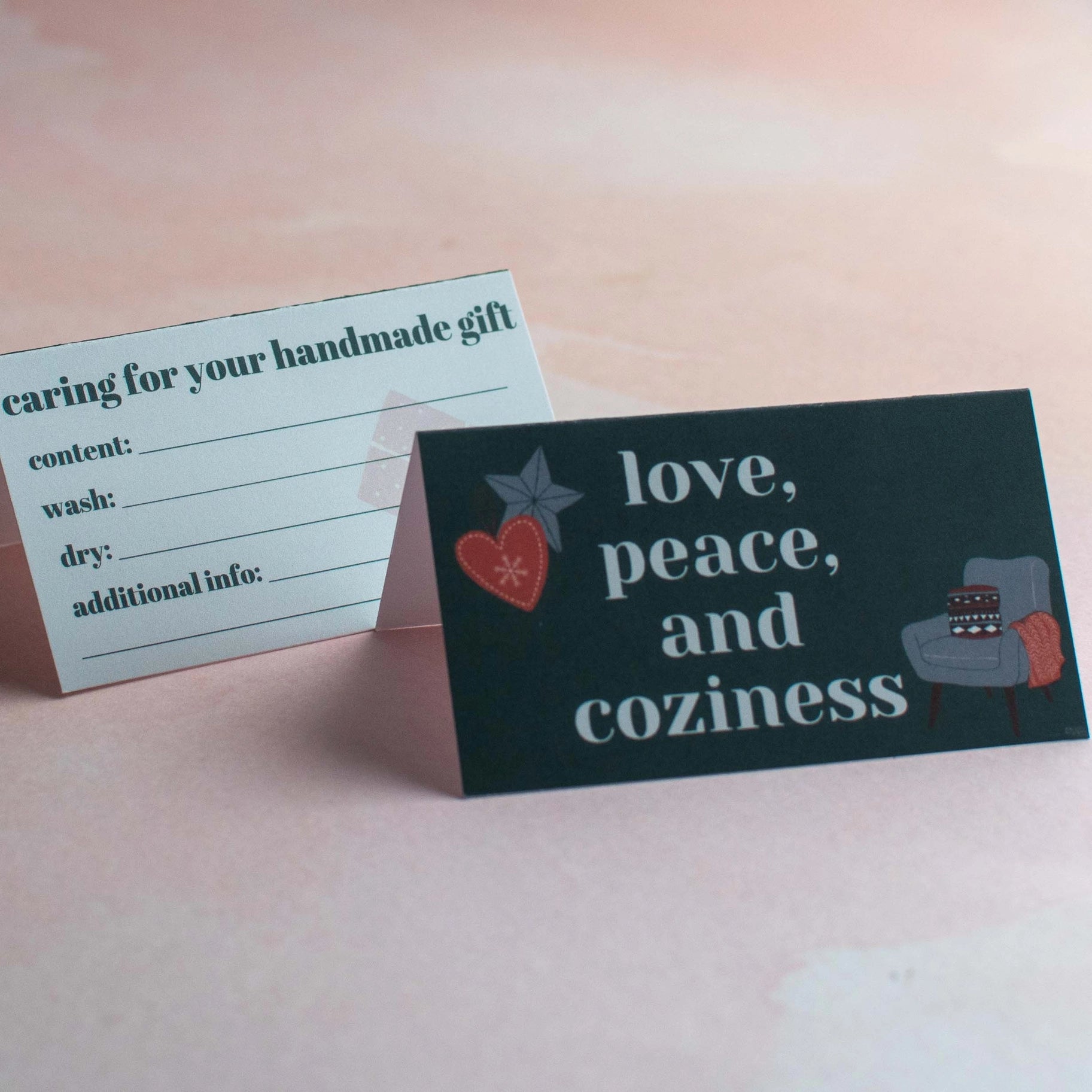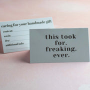 Tell 'em what you think and how to care for your handmade gifts. Enclose one of these babies!