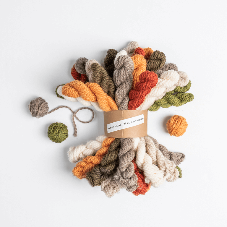 KIT INCLUDES: 21 mini hanks Blue Sky Fibers Woolstok Worsted (5g/12yds each)