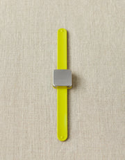 A great way to truly contain all your knitting tools - the Maker's Keep magnetic bracelet. It is a slap-bracelet so it fits everyone (one size truly fits all here). You can wear it, or simply drop it in your knitting tool bag to keep all the tools together - or even unfurl it and push the magnet to one end to use it as a straight edge while reading down a pattern.