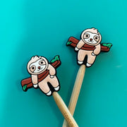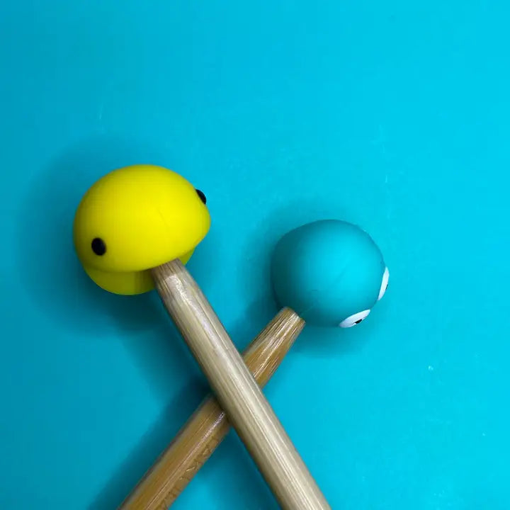 These soft, slightly squishy knitting needle point protectors are so fun to use! Made of bpa-free, food-grade silicone, they keep your stitches secure and defended against the chaos of the universe. If only they worked for more than just knitting... Simply stick your knitting needle points into the hole in the point protector and your stitches will stay secure! Works best with needles size US 3 - US 11