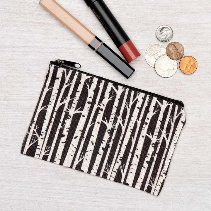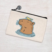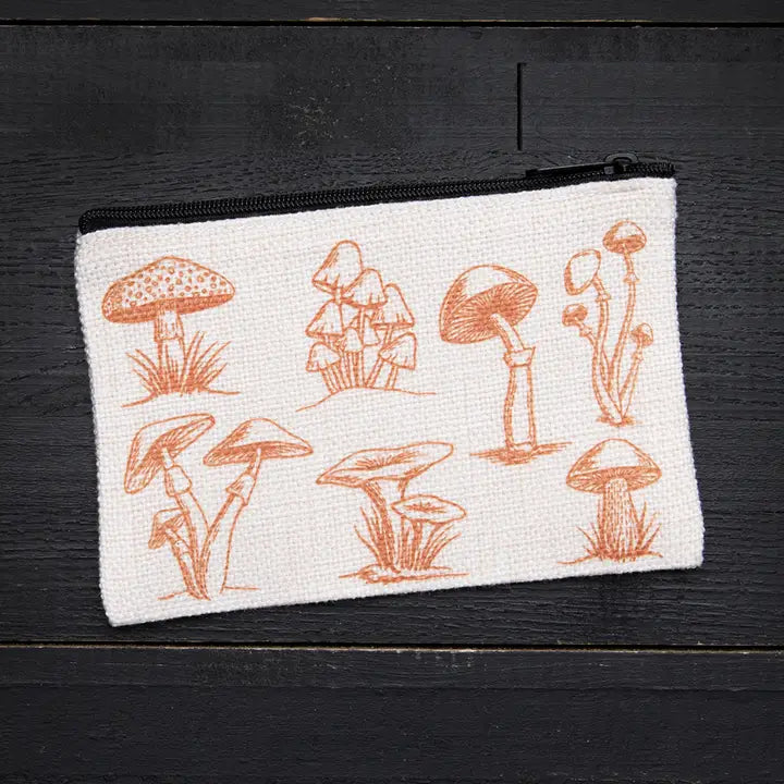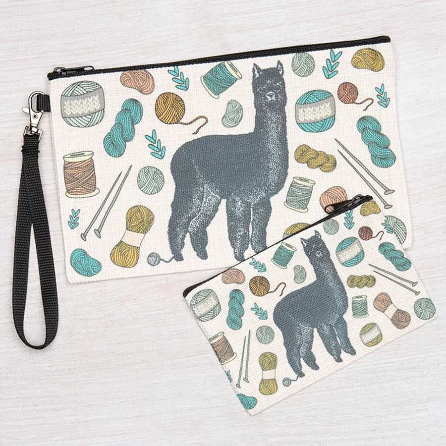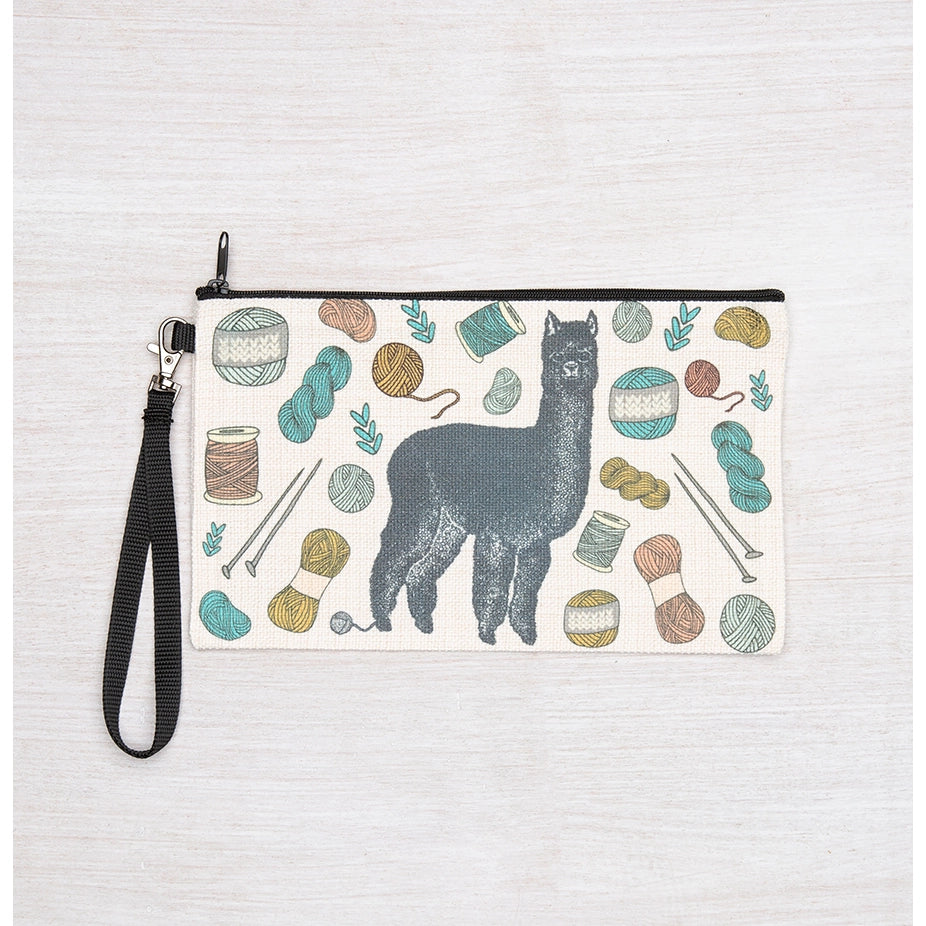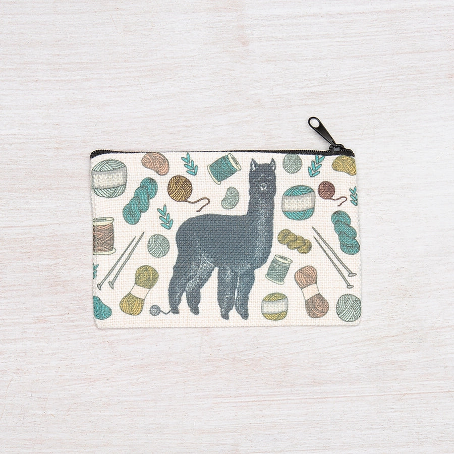 Polyester linen zipper pouch. This little pouch is perfect for change, headphones, makeup, or - best of all - knitting/crochet project notions!
