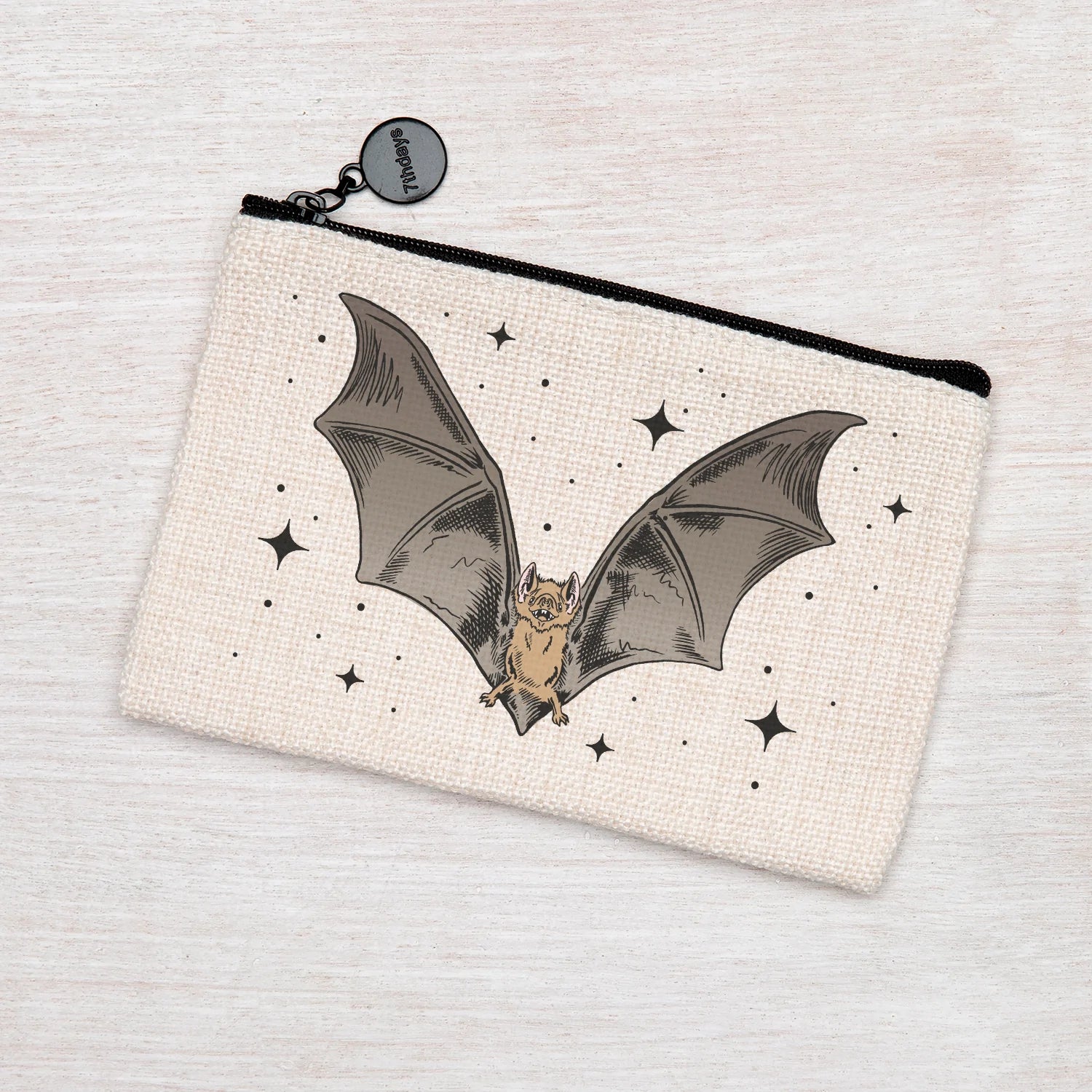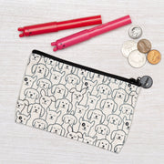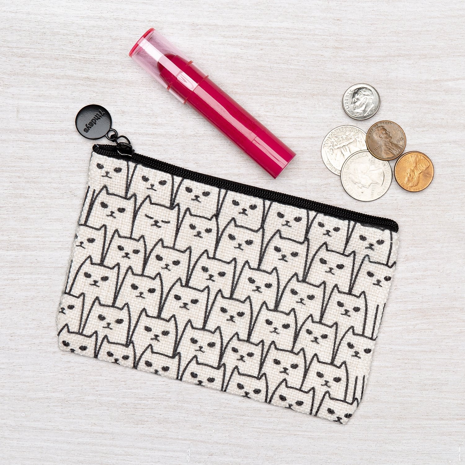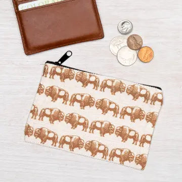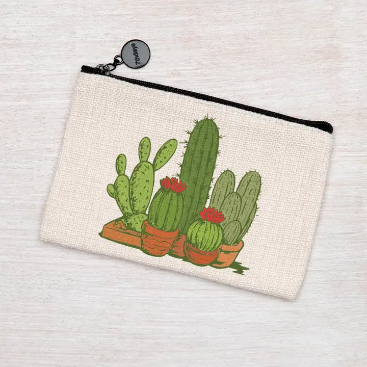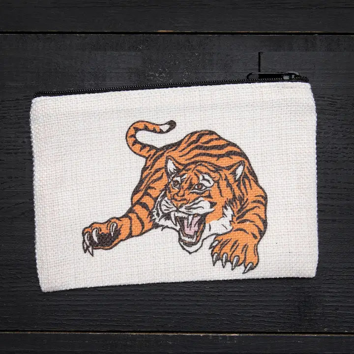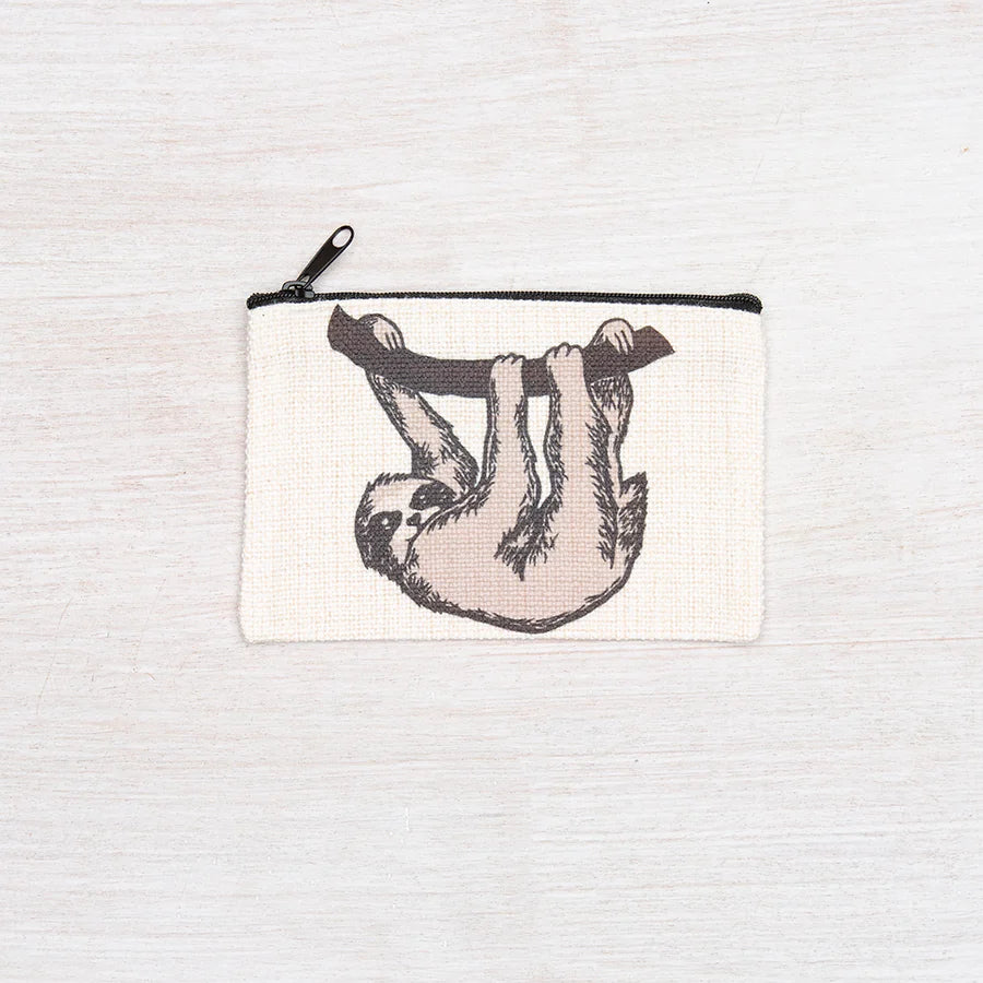 Polyester linen zipper pouch. This little pouch is perfect for change, headphones, makeup, or - best of all - knitting/crochet project notions!