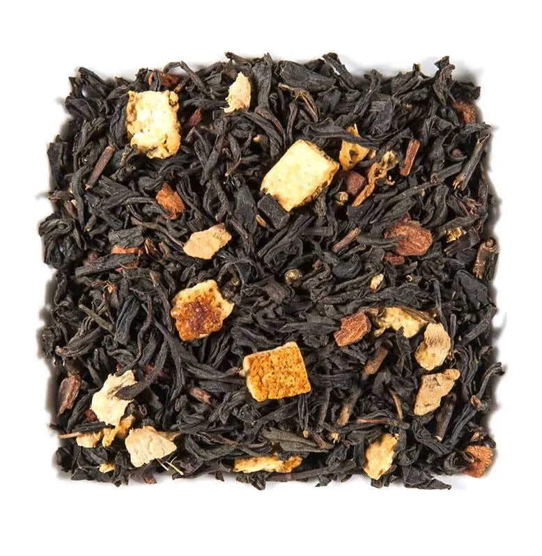 Ingredients: Black tea (67%), orange peel, ginger pieces, cinnamon, cardamom seeds, flavorings, vanilla pieces.
