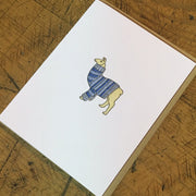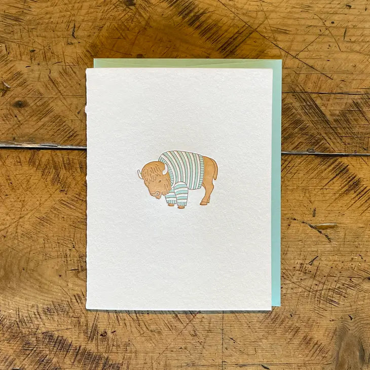 A letterpress card with a cute animal wearing a sweater or scarf makes a great for knitters, yarn lovers, farmers, and people who love cute animals! Size: 4.25 x 5.5 inch folded card. Paper: thick 100% cotton white card stock.