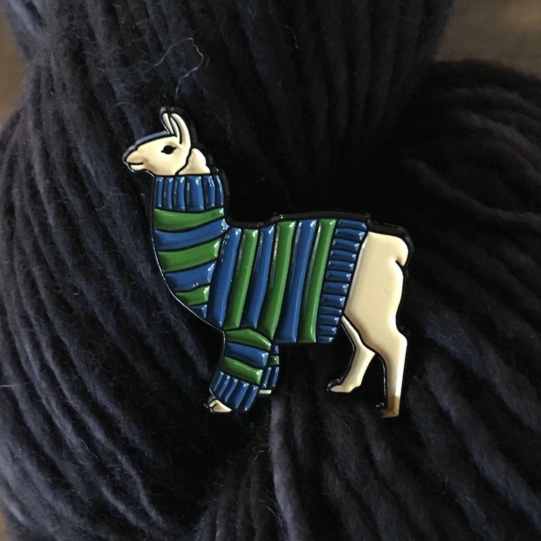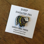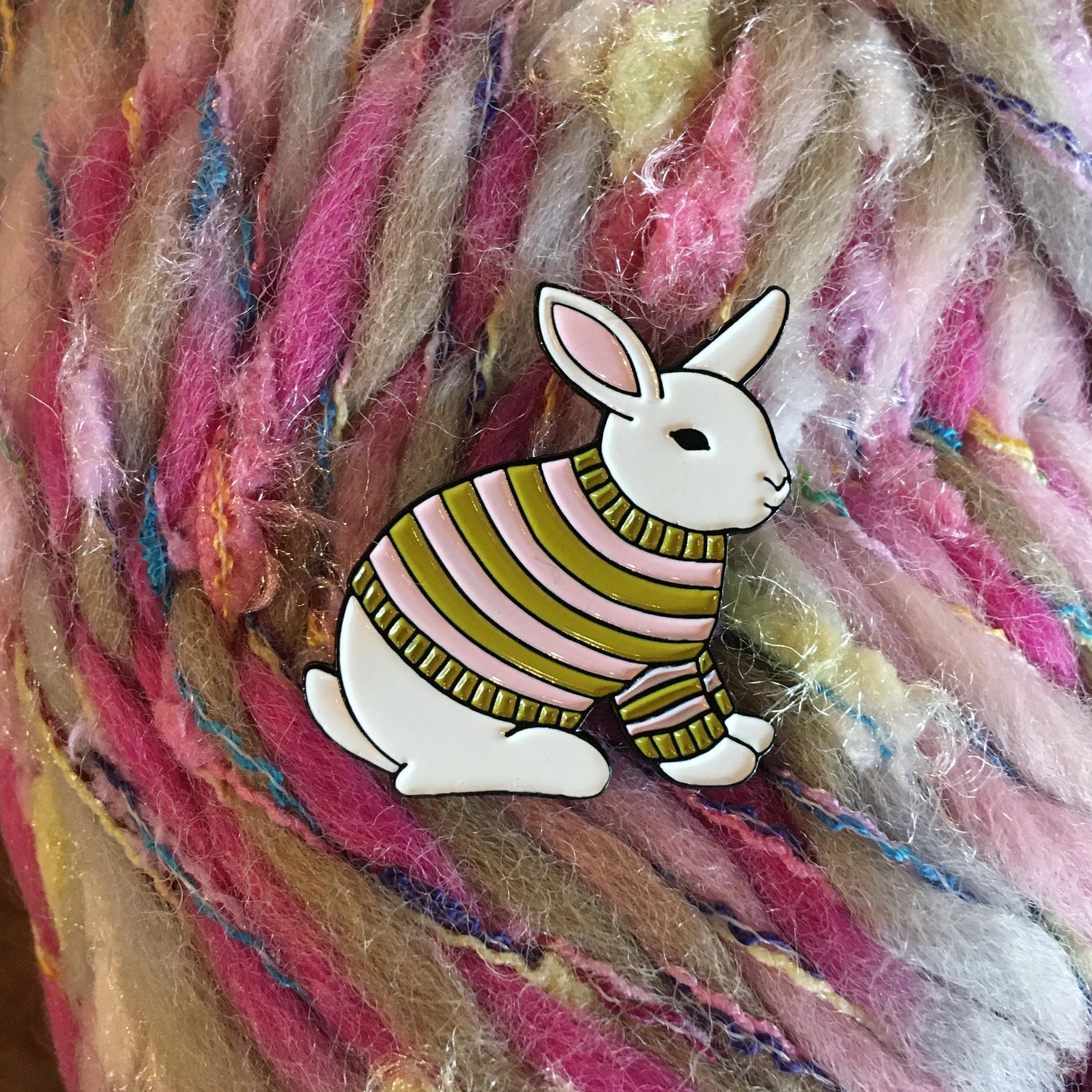 These cute animal with stripy sweaters pins are the perfect accessory for your knitting bag or favorite woolen jacket! Get one for yourself and another for your yarn loving friend. Size: approximately 1x1.125 inch. Materials: black nickel metal and soft enamel with black rubber clutch. Packaging: letterpress printed card backer.