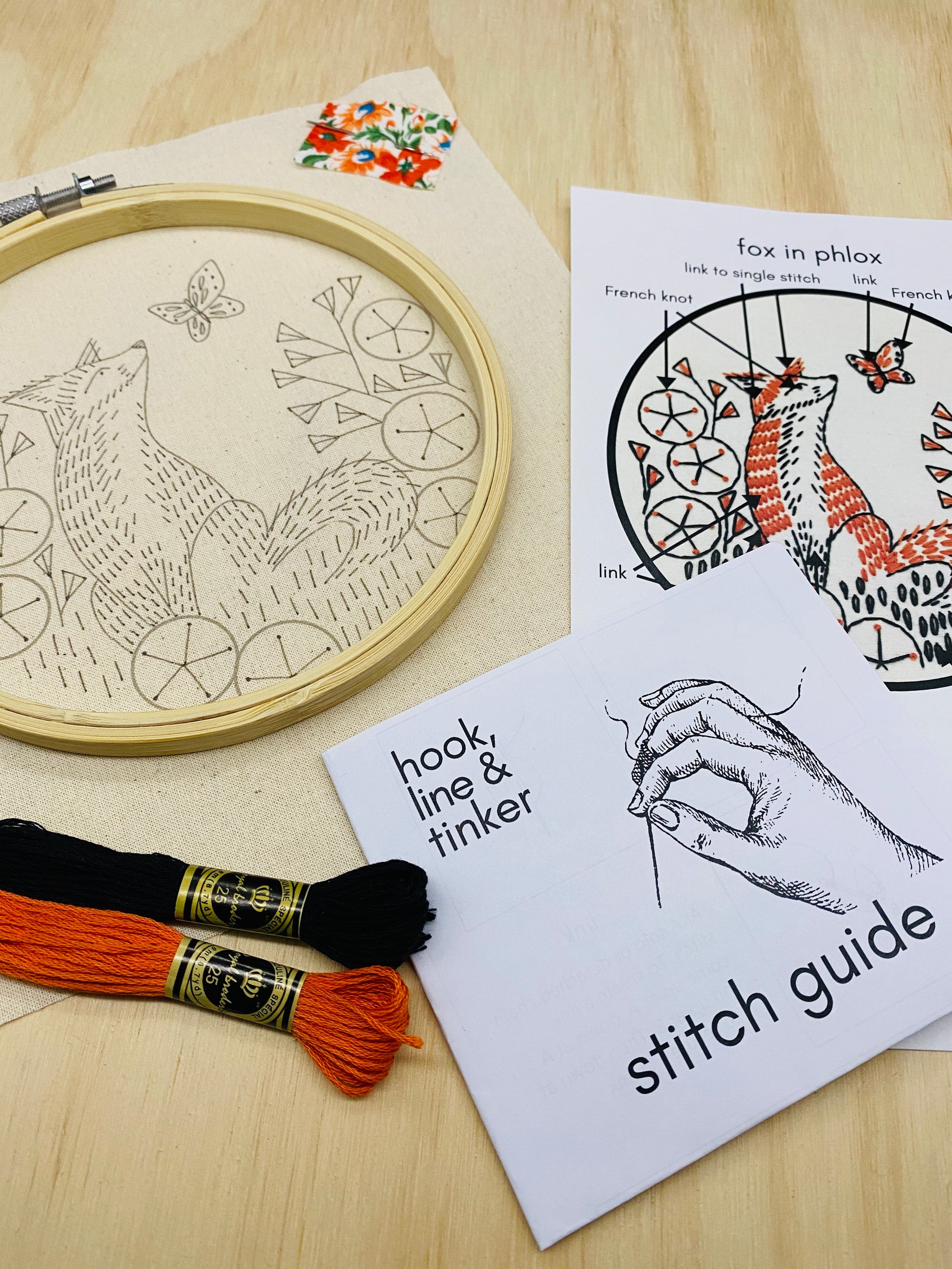 Hook Line and Tinker's Complete Embroidery Kits are great for everyone, from beginner, on!
