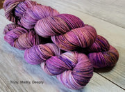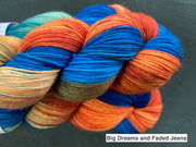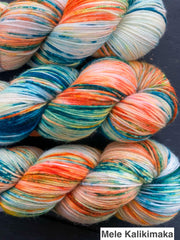 Rocking Sock is a wonderfully soft superwash merino base. It is 75% Superfine superwash merino and 25% Nylon. This is a really durable and reliable blend.