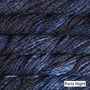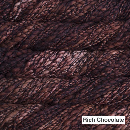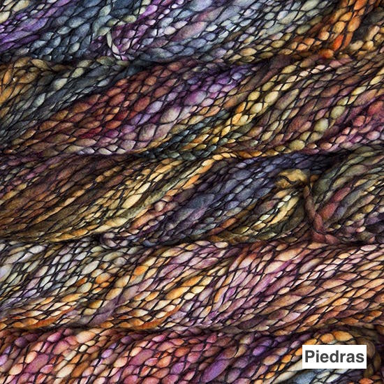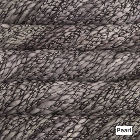 A truly unique yarn! A bulky thick-and-thin single made of Malabrigo's delightfully soft superwash merino wool, and then criss-crossed with a binder thread (either black or white.). Caracol knits up into a cozy, fluffy fabric with a ton of texture and visual interest. Simple stitch patterns really let it sing!