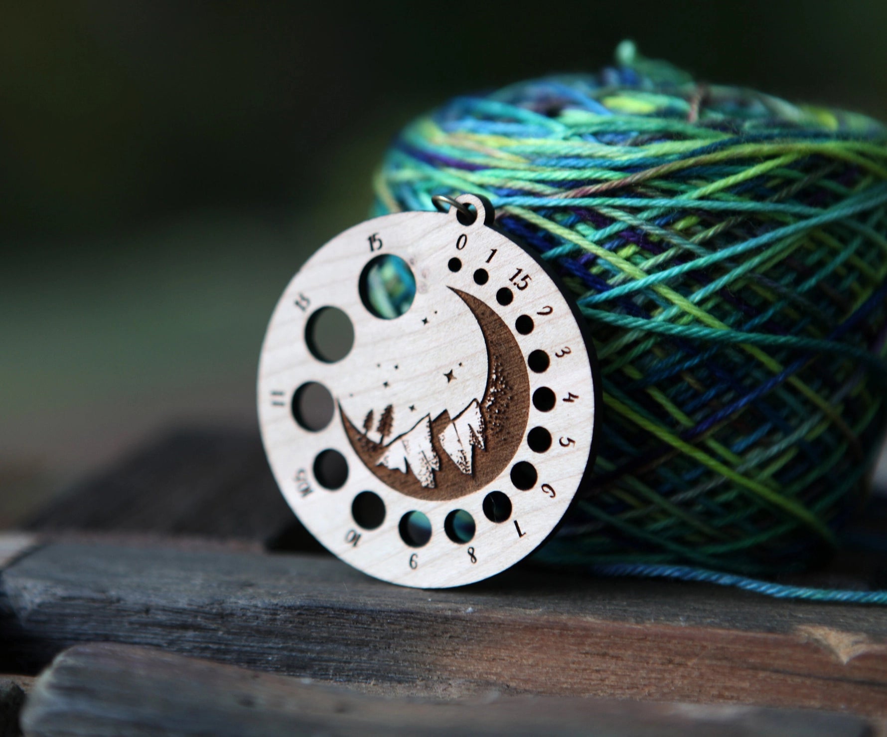 Wood needle gauge designed and made by Sunrise Grove. Cherry wood.