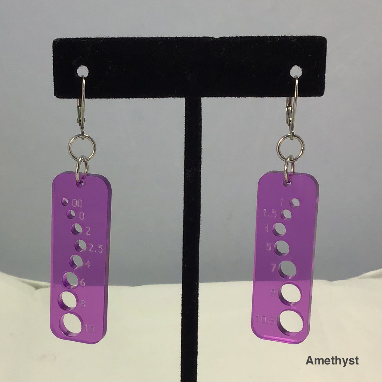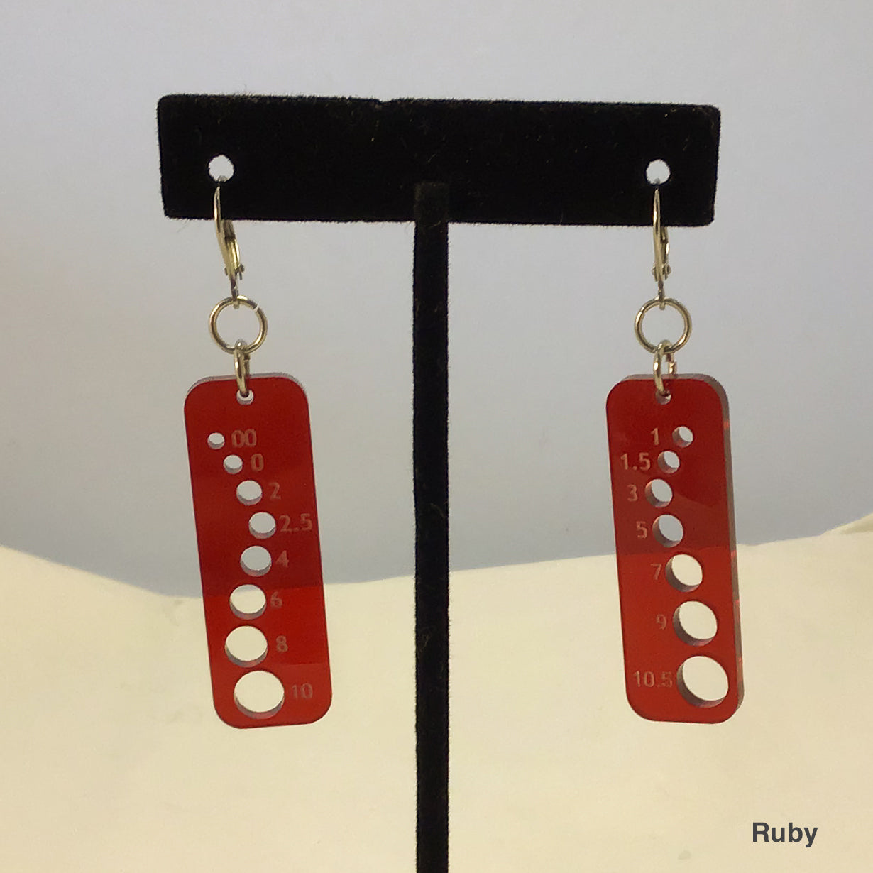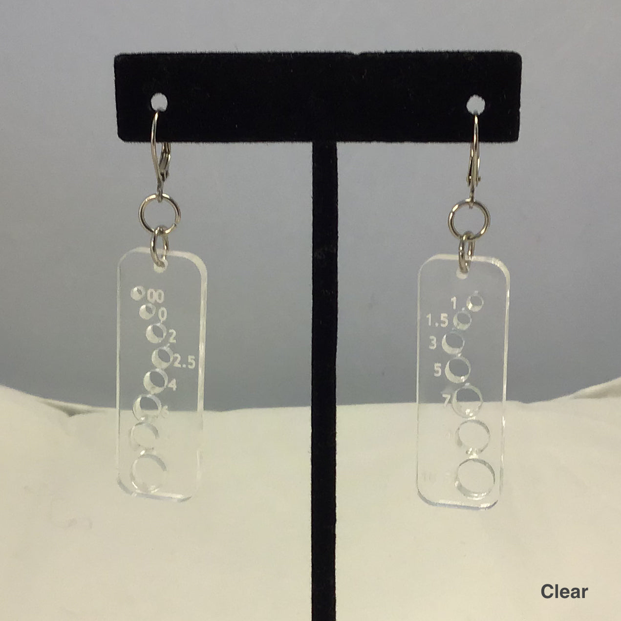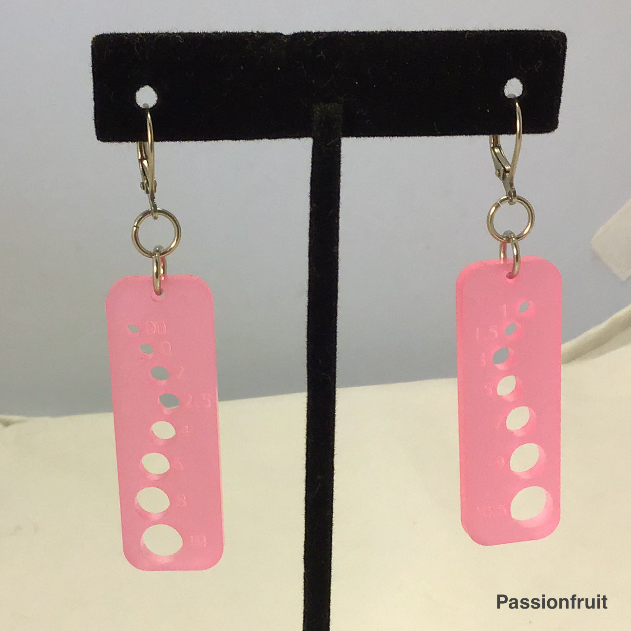 These stylish earrings have a secret purpose: they'll measure your needles! They include nickel-free surgical steel leverback posts.