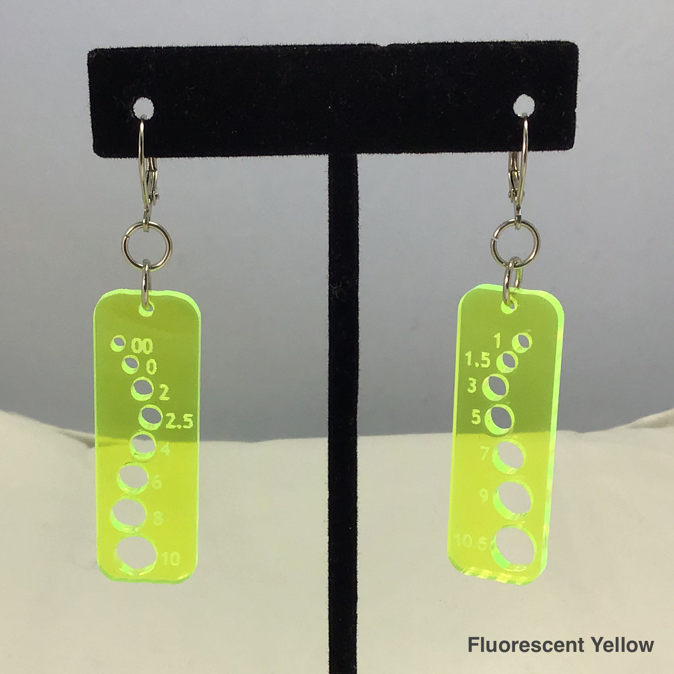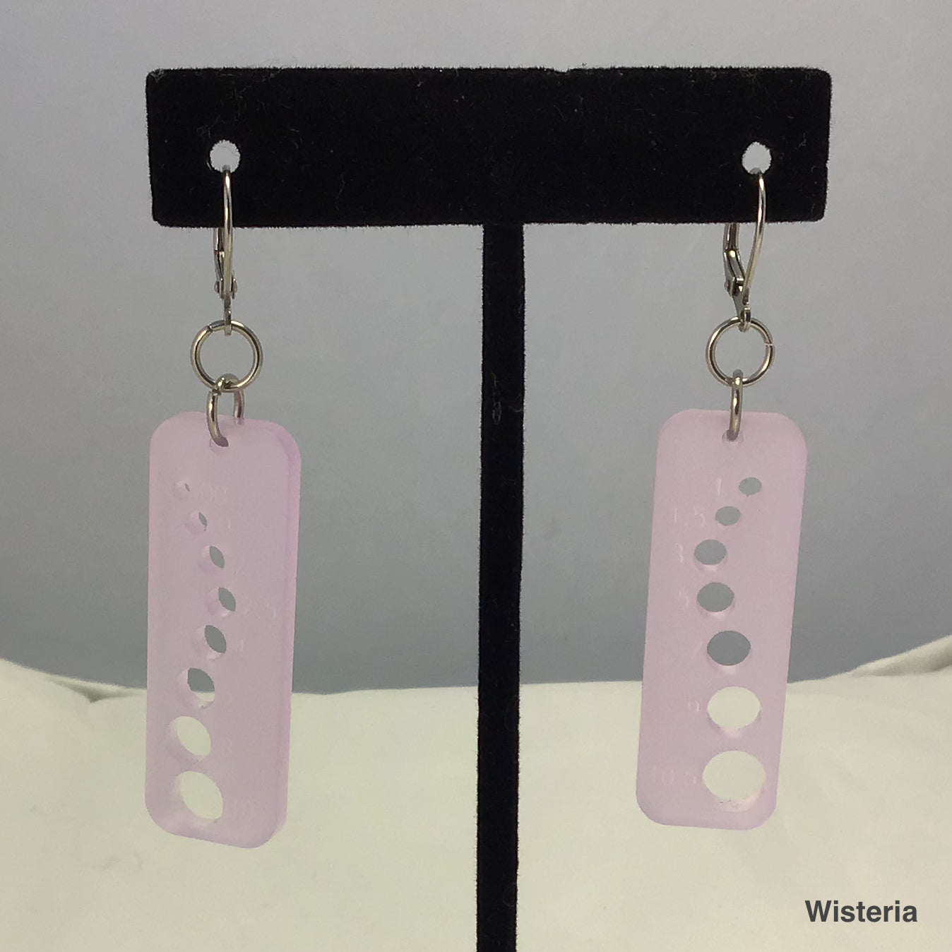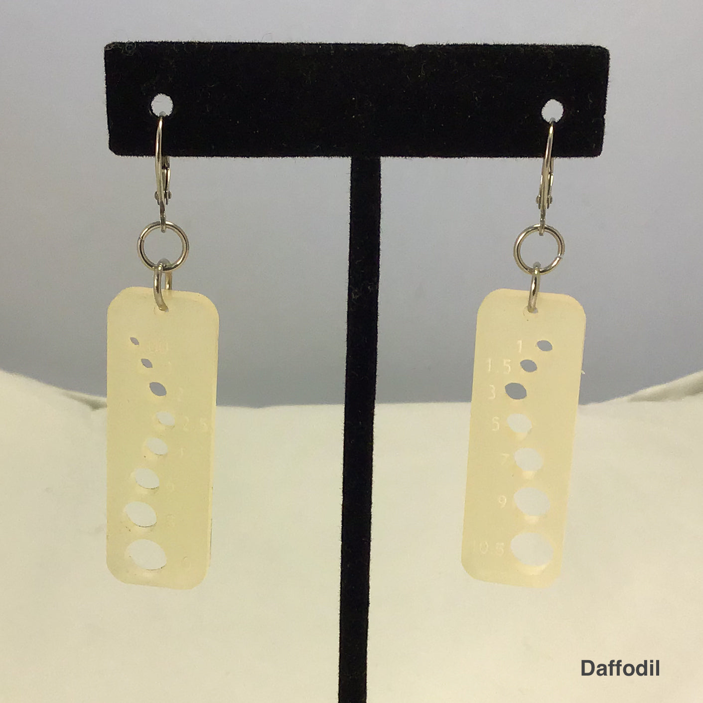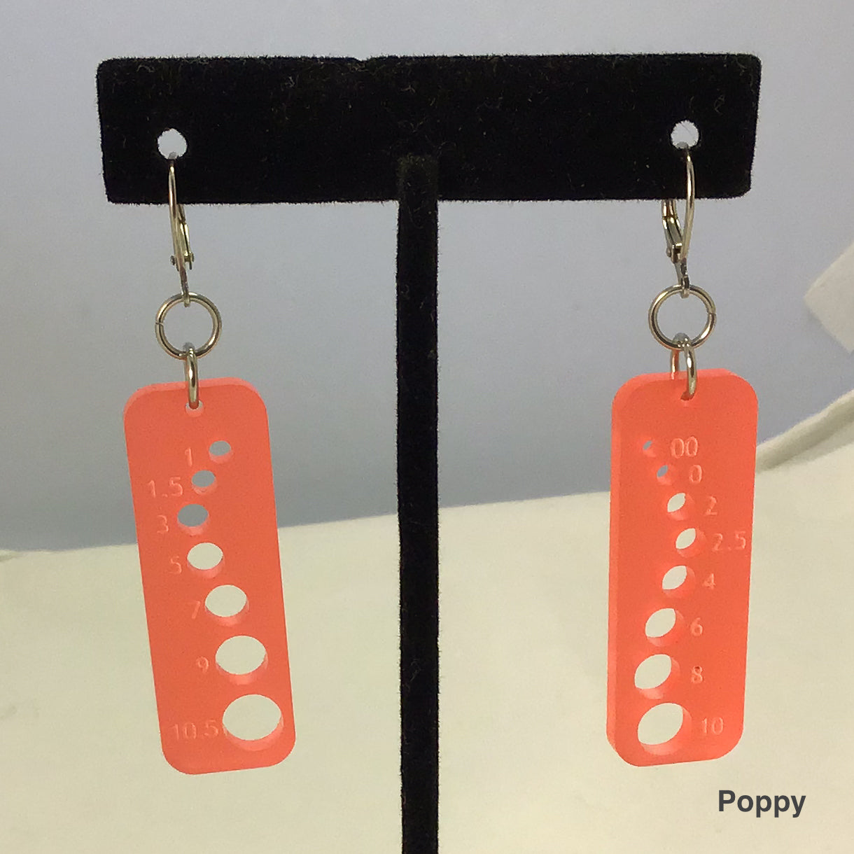 These stylish earrings have a secret purpose: they'll measure your needles! They include nickel-free surgical steel leverback posts.