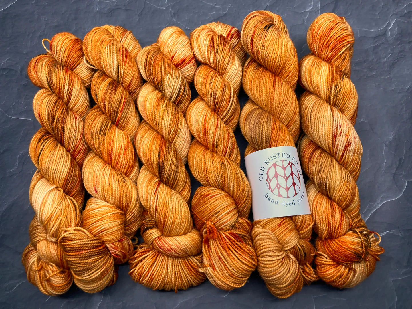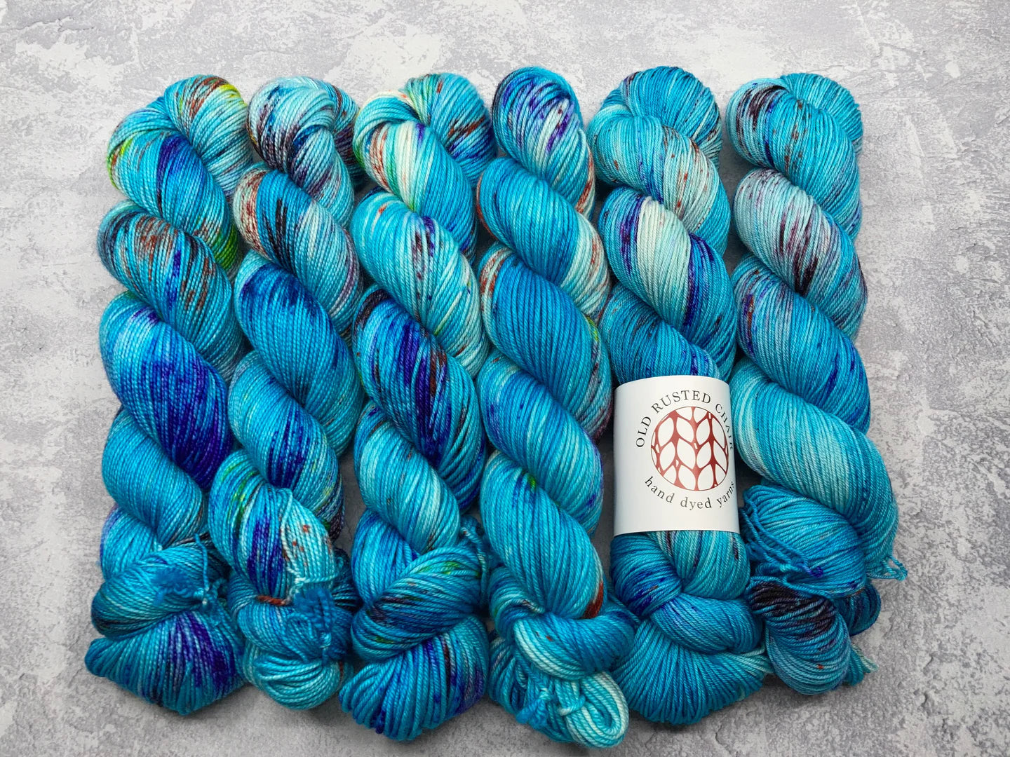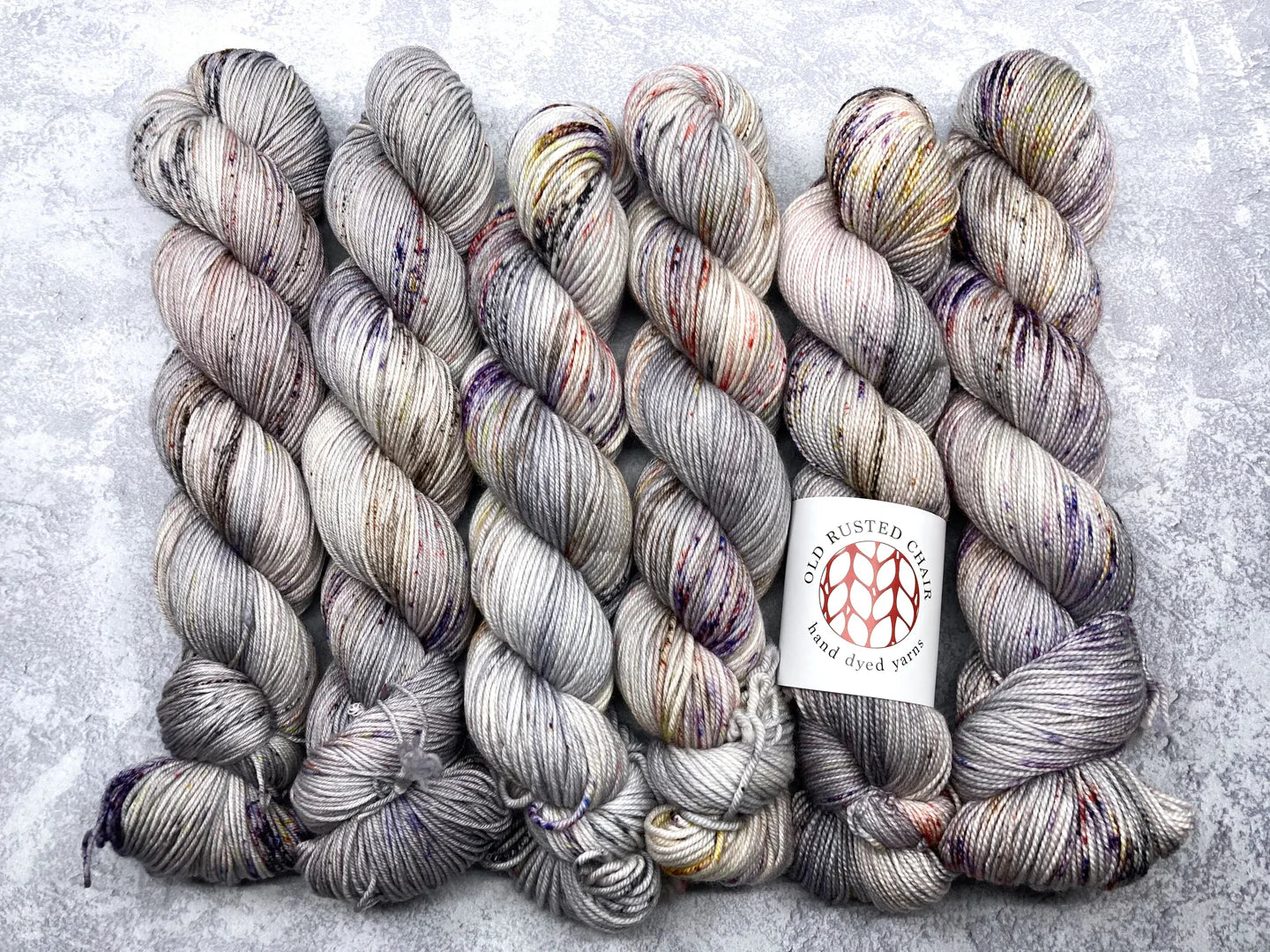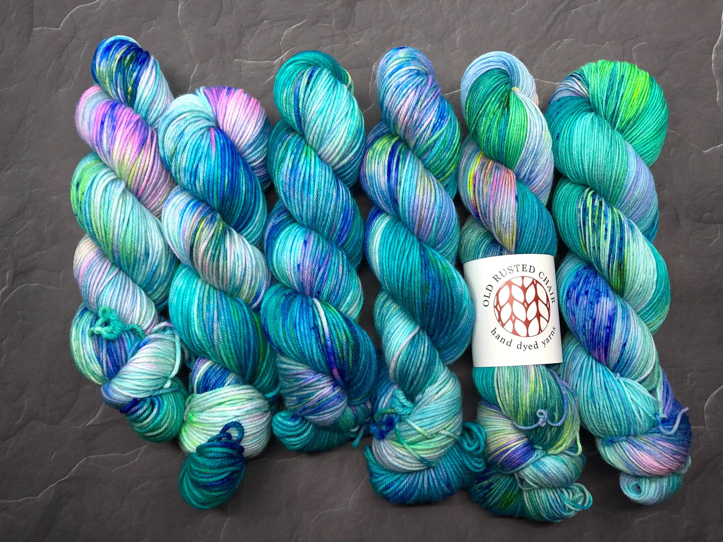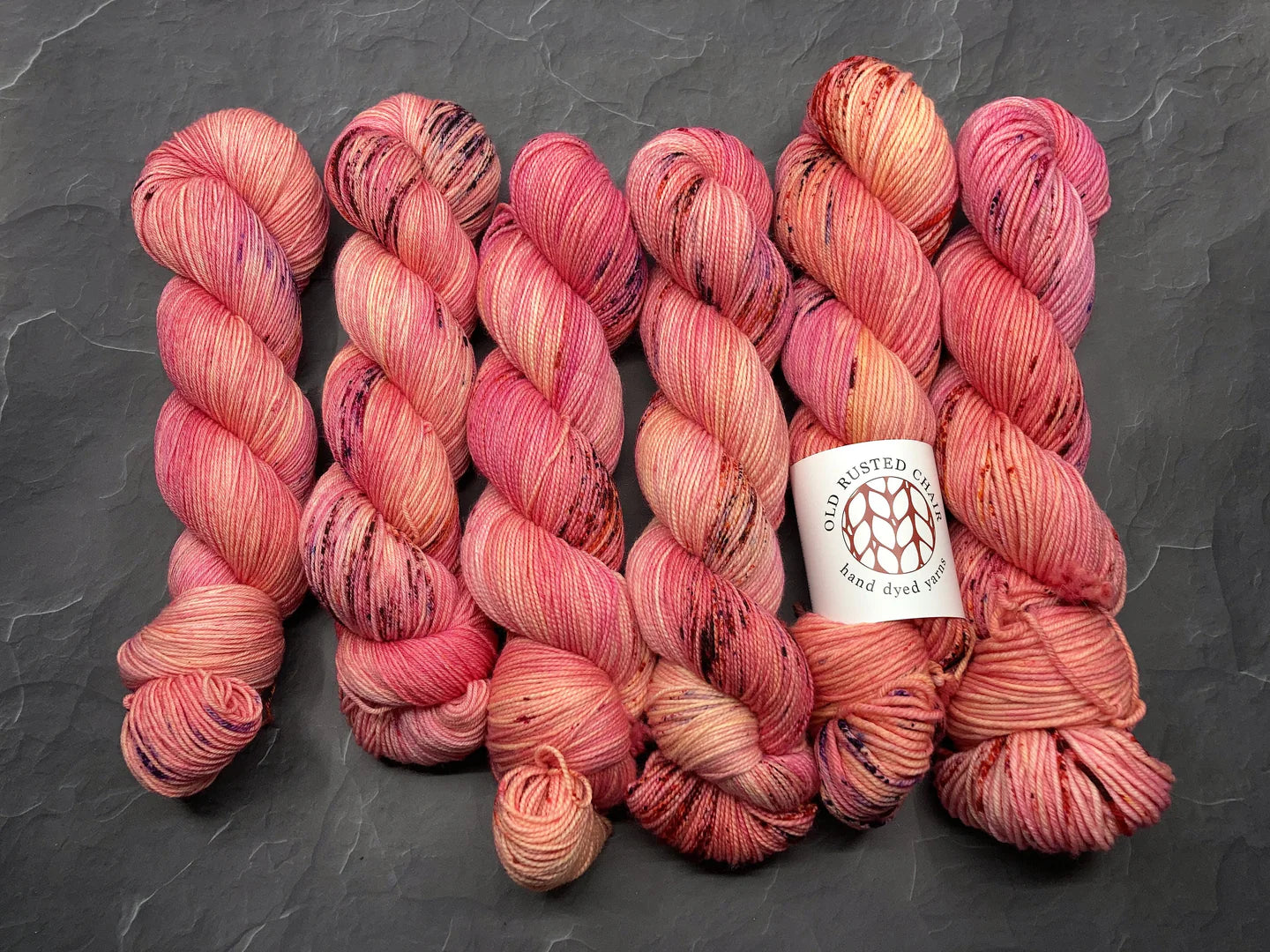 Old Rusted Chair Sock is hand-dyed by Lou, in her home studio in Tennessee. These vibrant and fun colors are great for everything from socks, hats, and mitts, to sweaters and shawls.