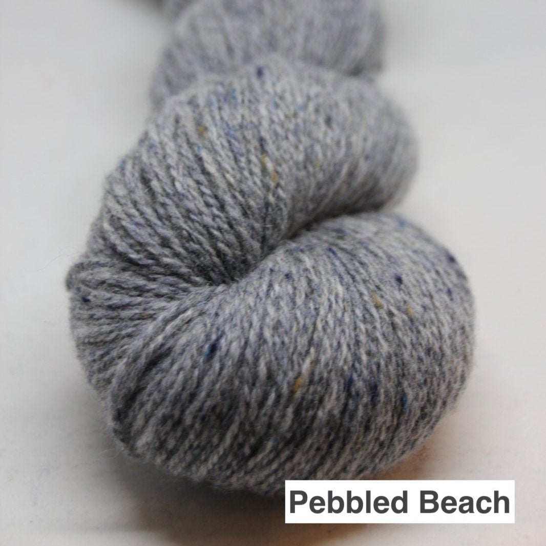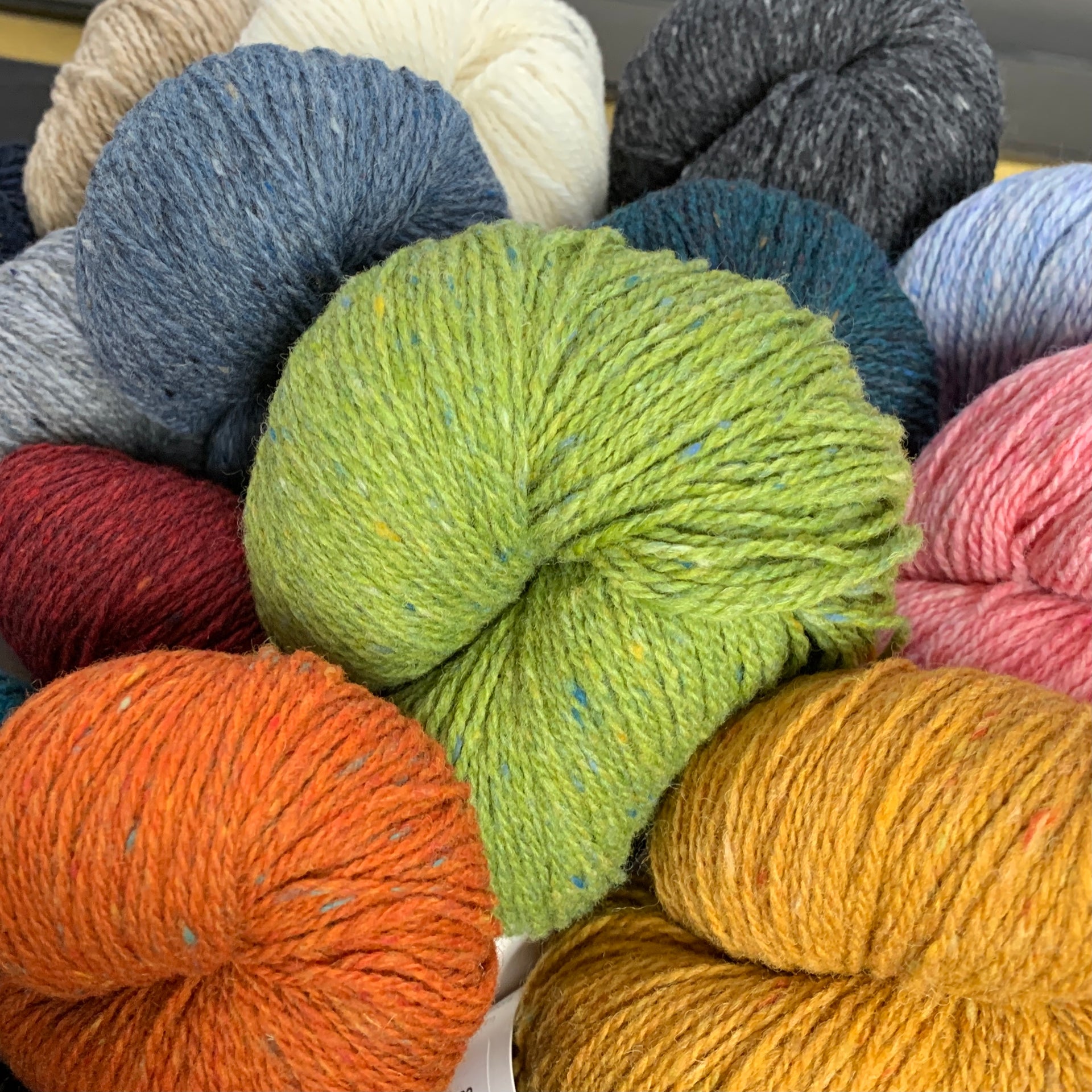 This 2-ply tweed yarn is spun in Ireland and has a beautiful loft and fluff once washed. This yarn is not superwash and works exceptionally well in hats, scarves, shawls, cowls, sweaters, and gloves/mittens in any style of knitting.