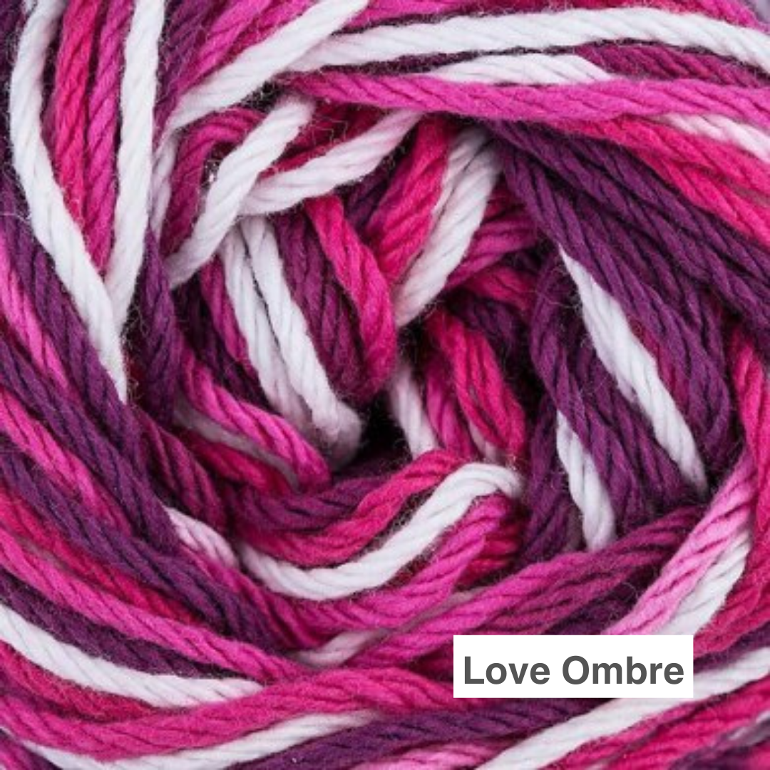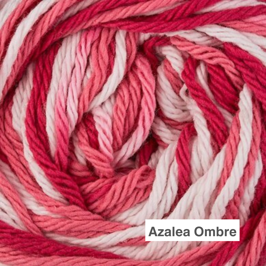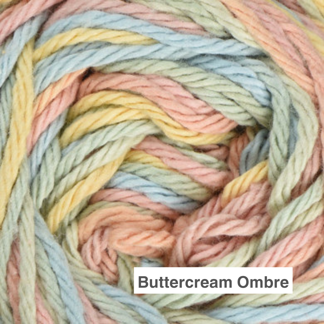 Sugar & Cream cotton yarn is a natural, 100% USA-grown cotton yarn. The perfect choice for your knit and crochet home décor needs. Sugar & Cream is a versatile worsted weight yarn, that’s great for small projects like dishcloths and potholders, to home décor staples like afghans! Available in a wide variety of shades, including neutrals, brights, and pastels. Conveniently machine washable and dryable for easy care. Sugar & Cream comes in multiple ball sizes (regular and super size), make sure you're getting what you need for your project!