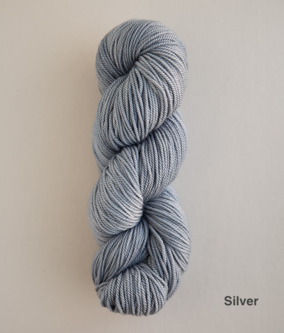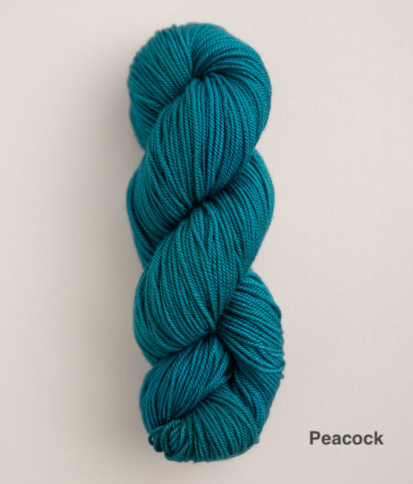 Pure merino spun into a beautiful three-ply light-worsted to dk-weight yarn. Perfect for everything from sweaters to baby gifts to quick handknit socks. Washable merino for easy-care.
