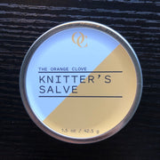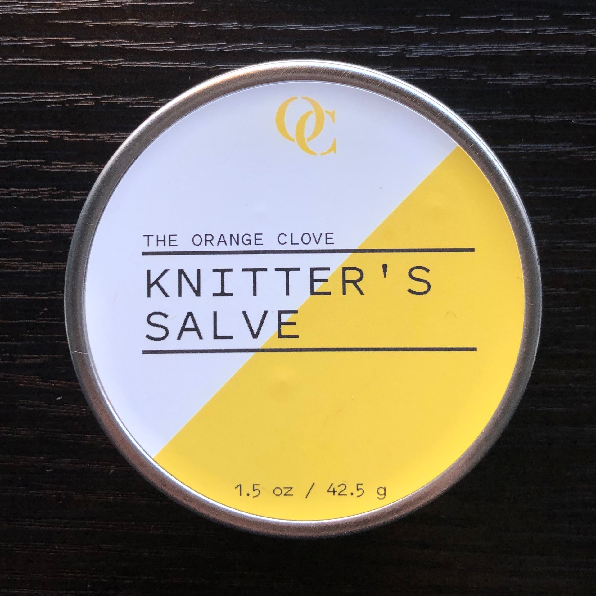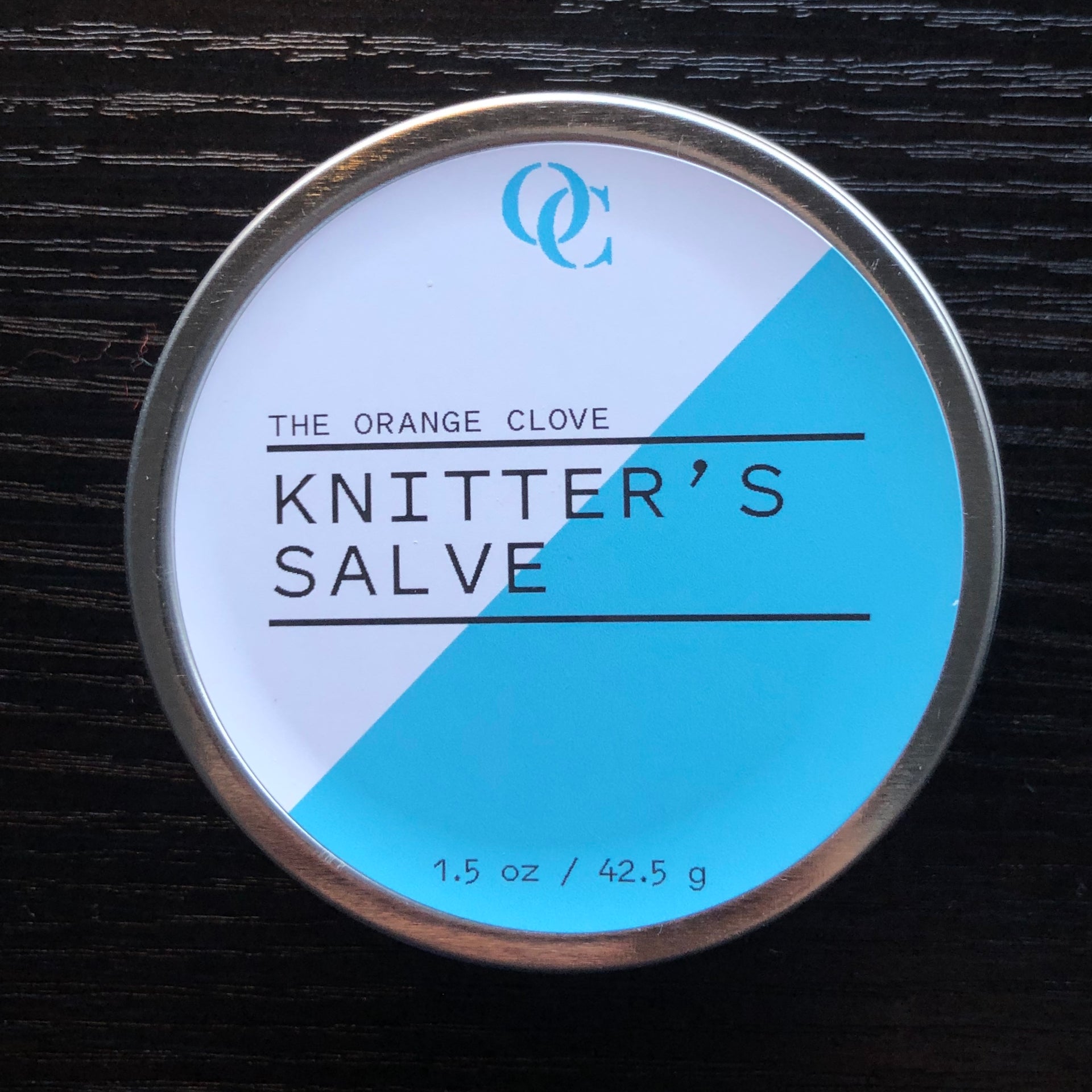 Knitter's Salve Citrus: *Jojoba oil, beeswax, *calendula-infused olive oil, *sweet orange essential oil, Mandarin essential oil (*certified organic)