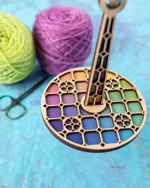 Each Mini Minder is made by hand and comes with a leather strap and a cotton dust bag. It fits any weight yarn as long as it is wound on a standard ball winder - So if you wind your own yarn on a ball winder or have your yarn wound at the yarn shop this one is for you. Fits any yarn balls 3 1/2” tall.