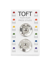 A pair of interchangeable press studs for use with TOFT natural colored alpaca pom poms. Sew one half to your hat and the other to your pom pom and then mix and match your pom pom color to suit your outfit and mood. These also work interchangeably with the TOFT bright and colored pom poms which come with a pre-sewn stud.