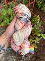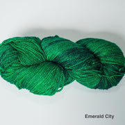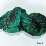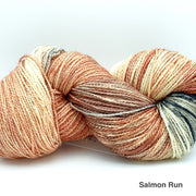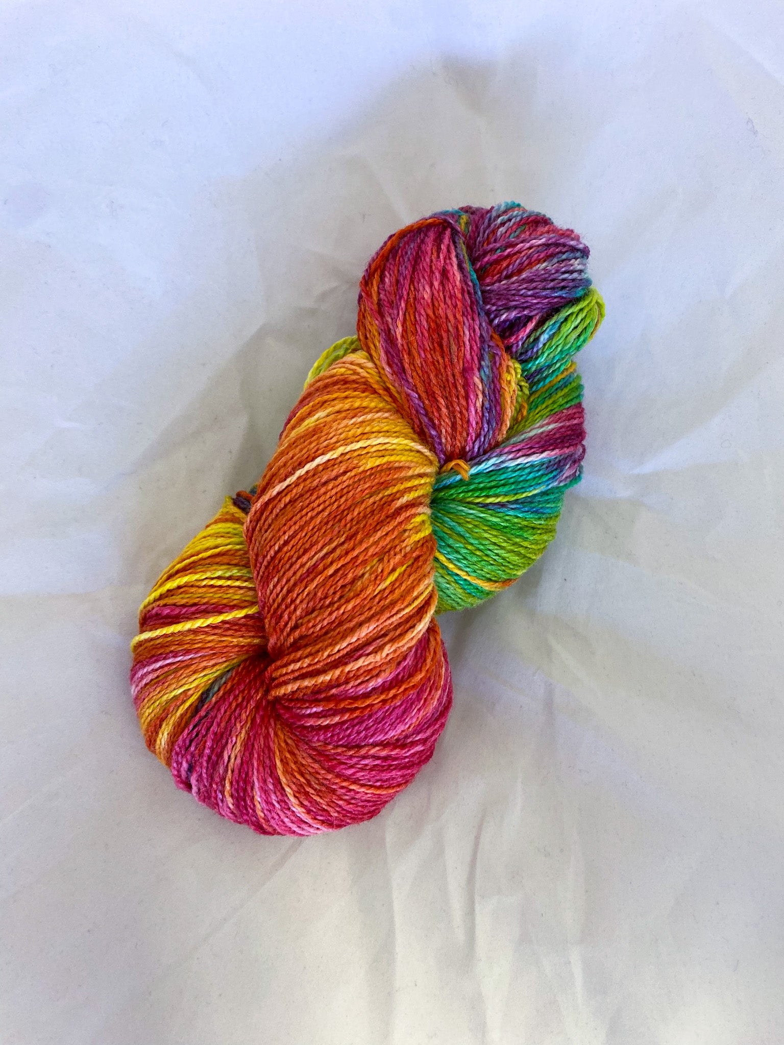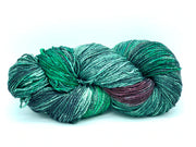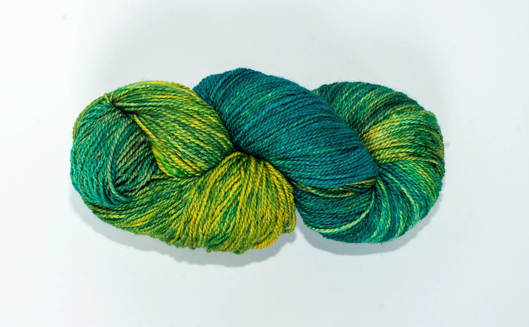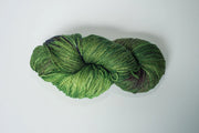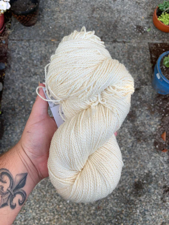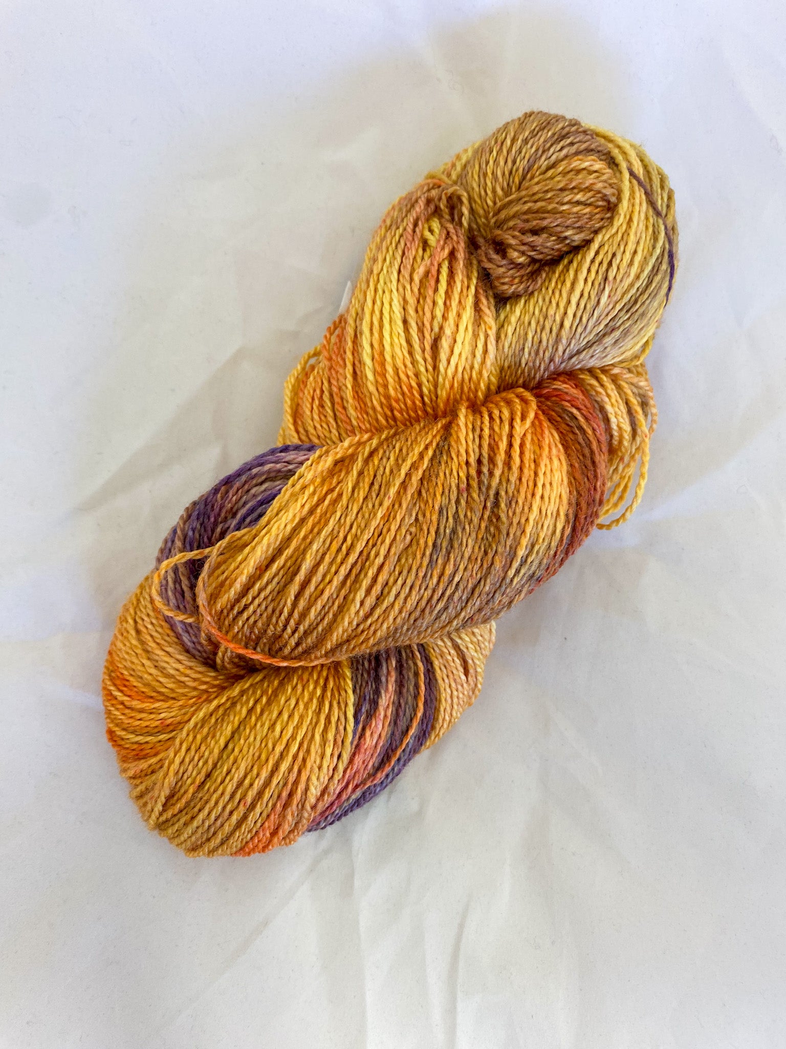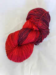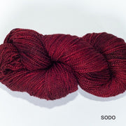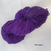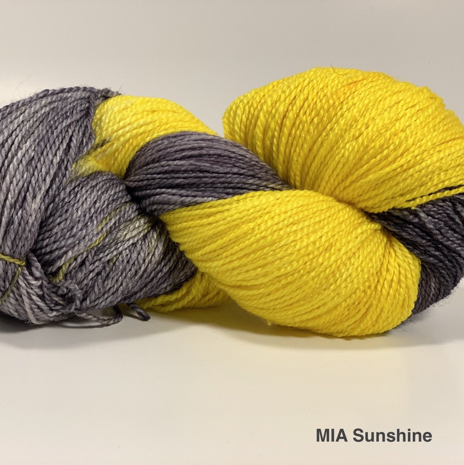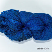 Mismated is silky and warm. The drape from the silk is fabulous, while the merino wool adds body and keeps your blocking intact for many uses.
