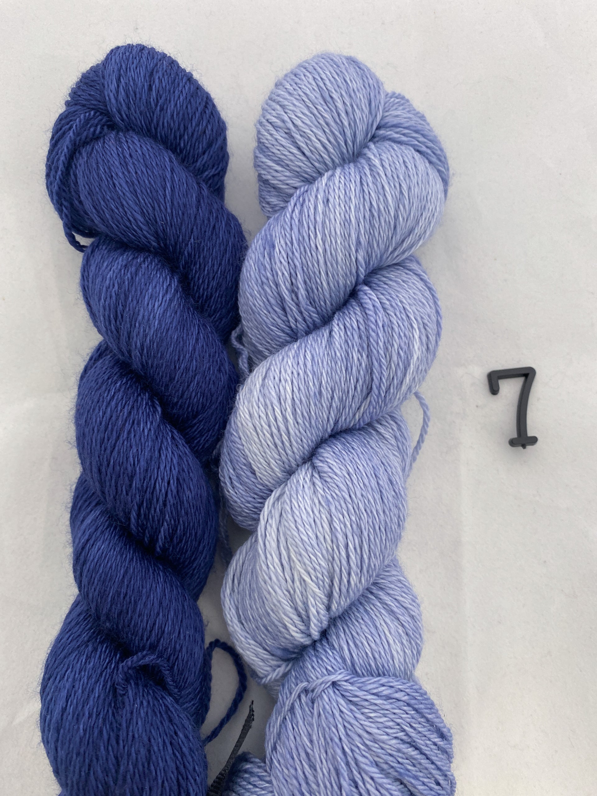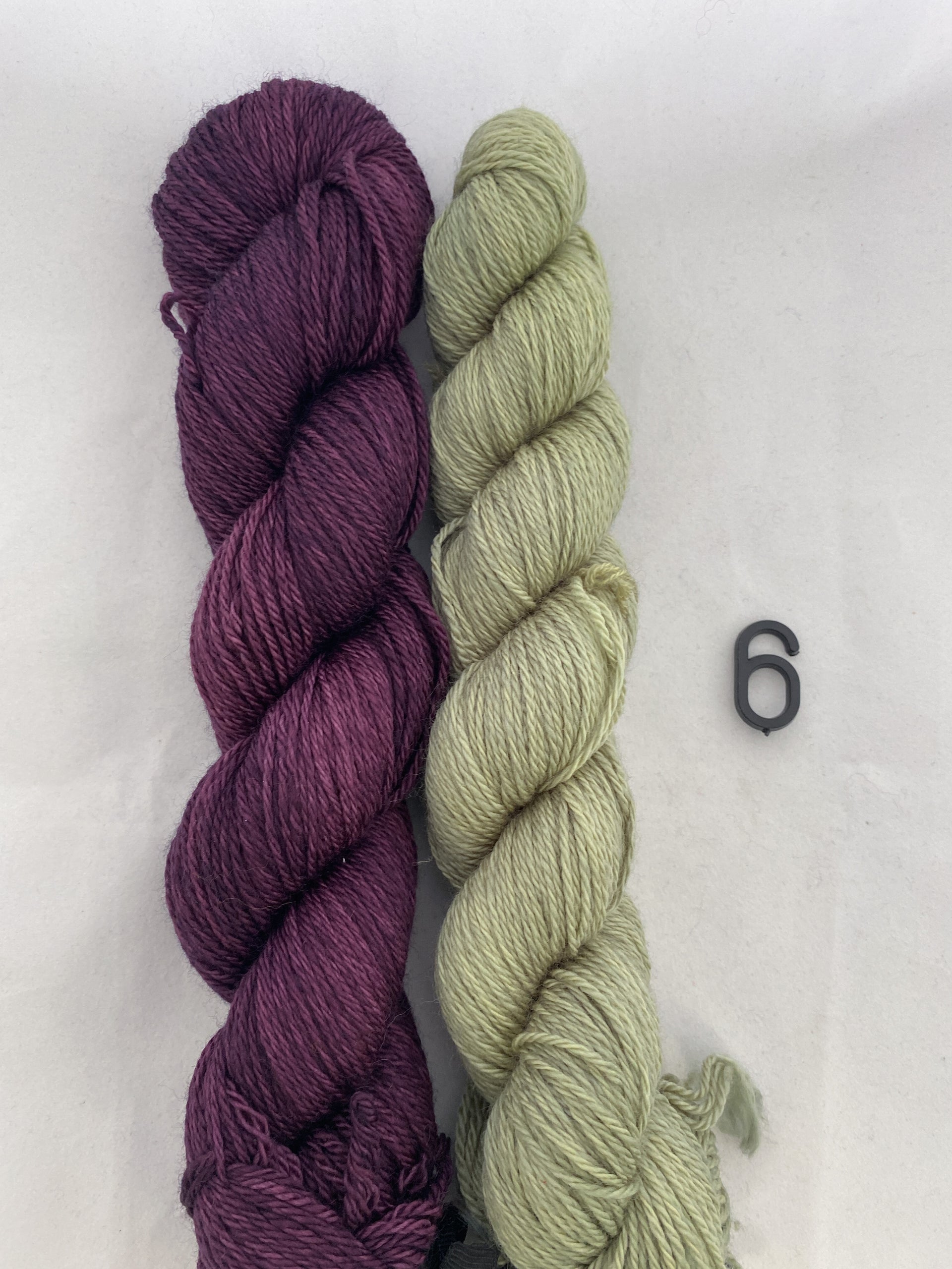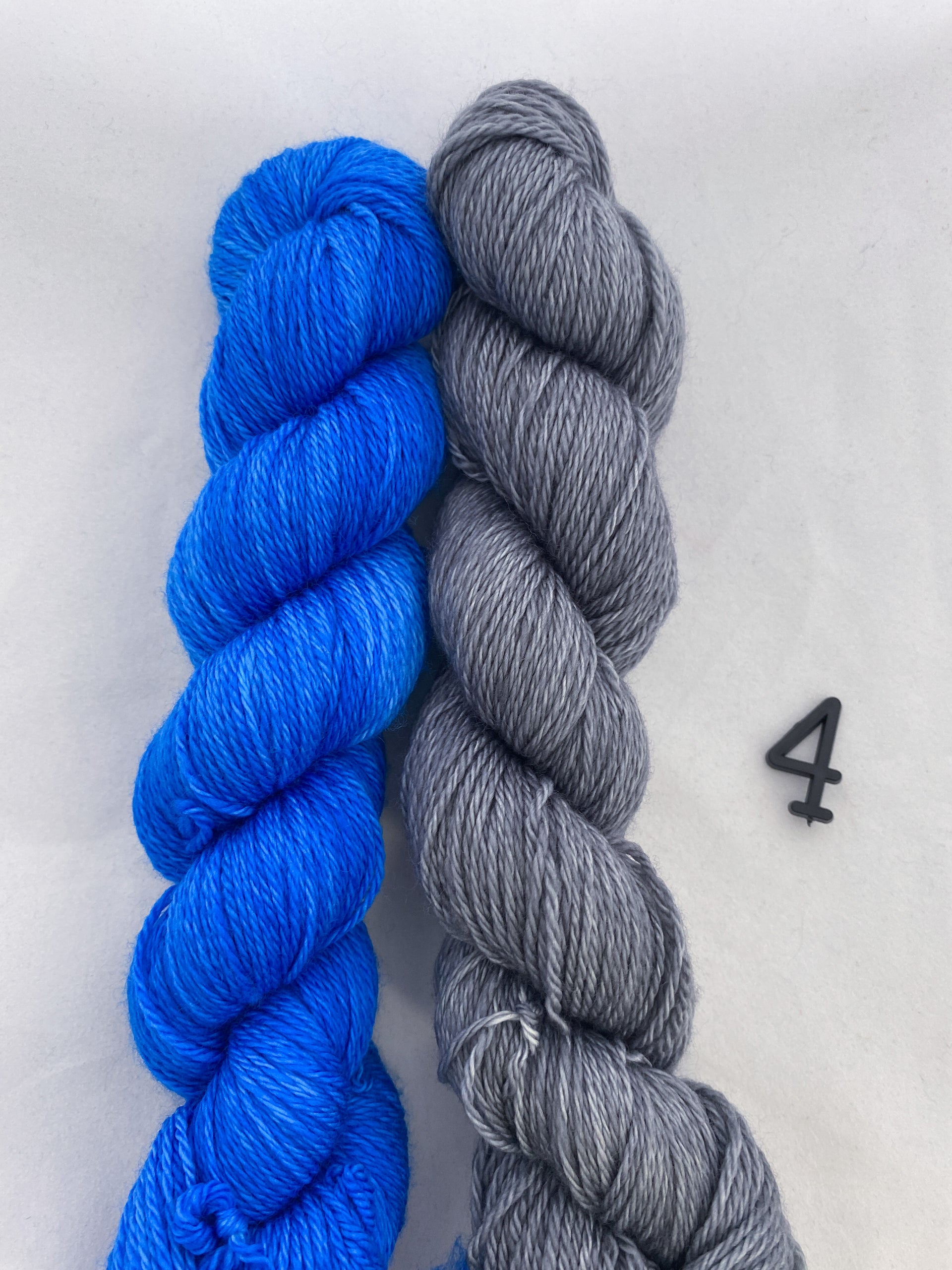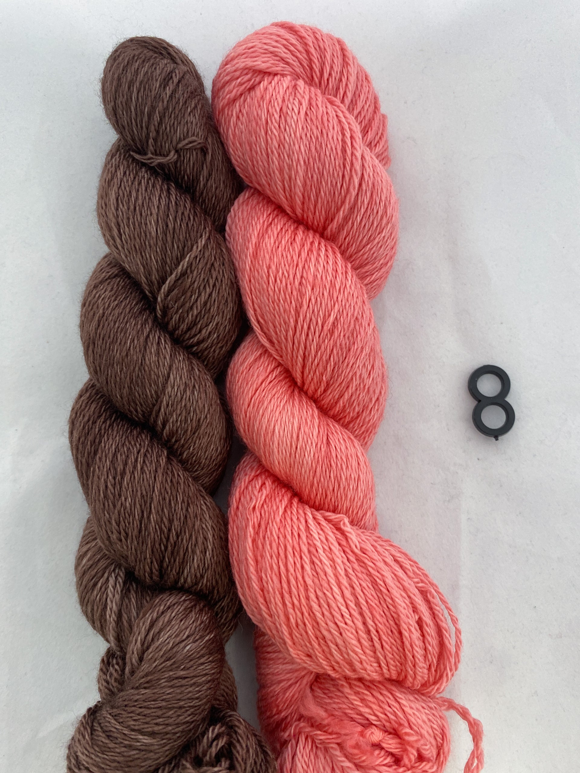 Each shawl set contains 100g each of two colors. Great for the Casapinka 2022 LYS Day pattern (shown below), Power and Parallels, or any other two color shawl pattern.