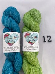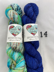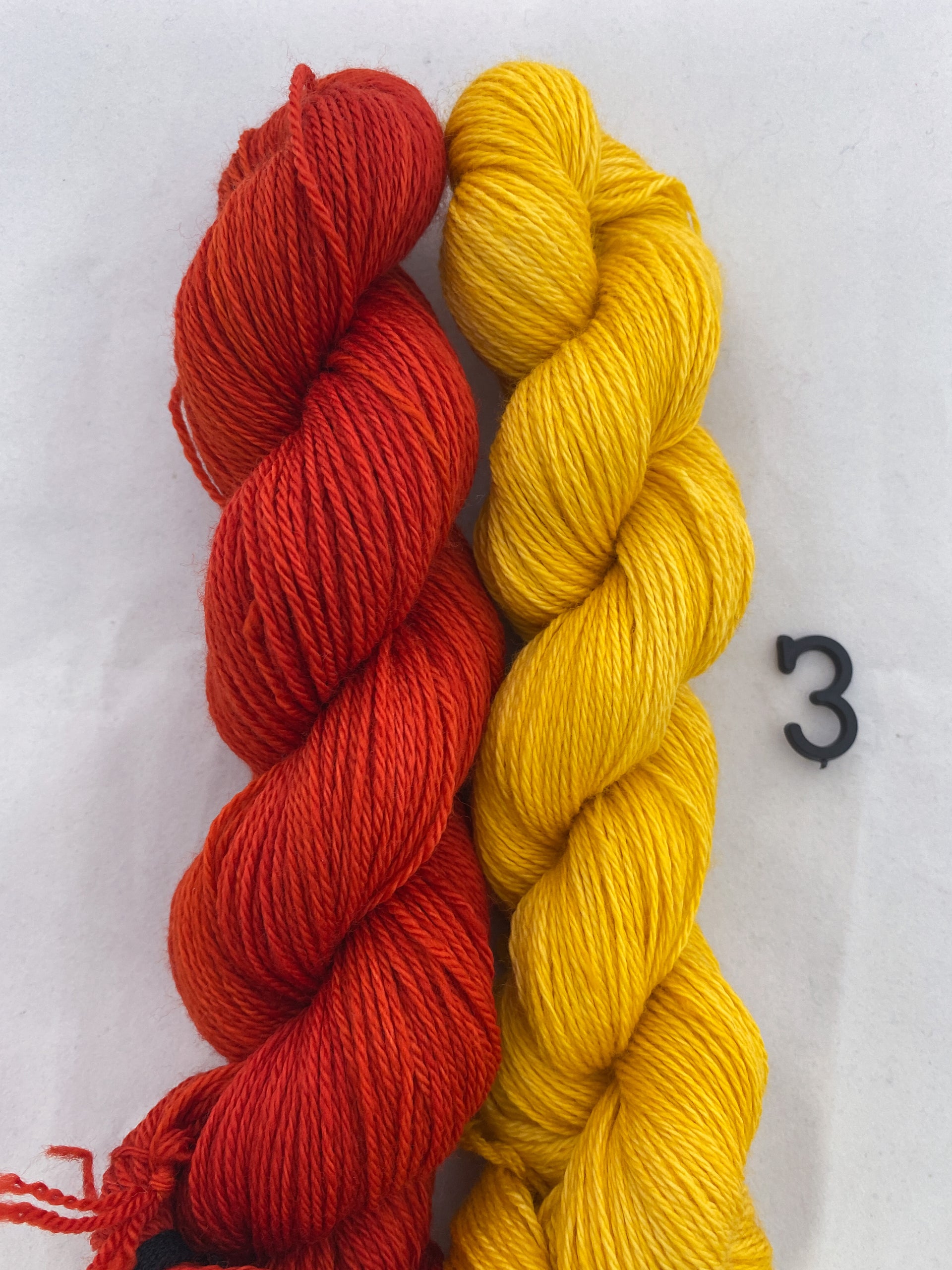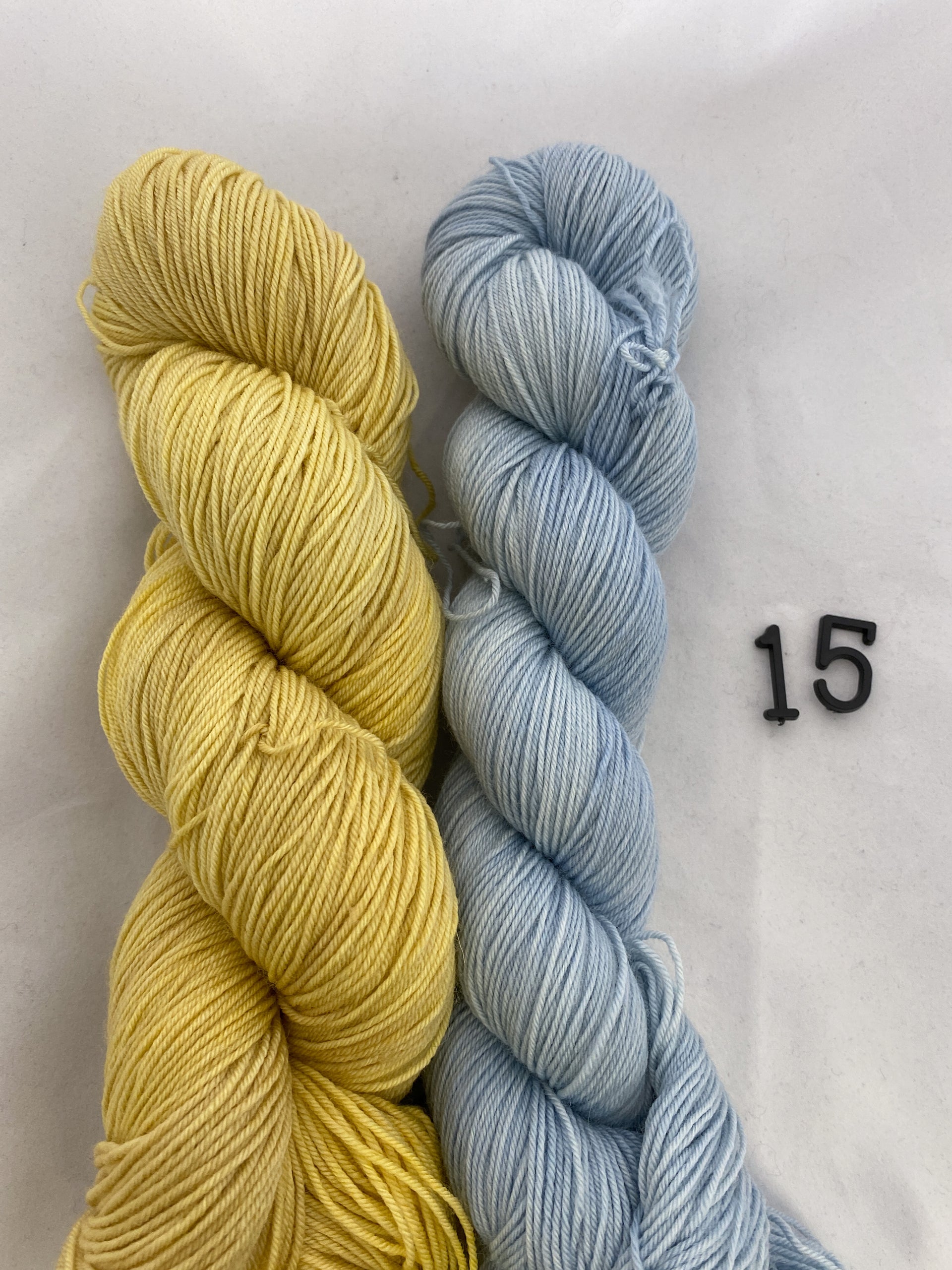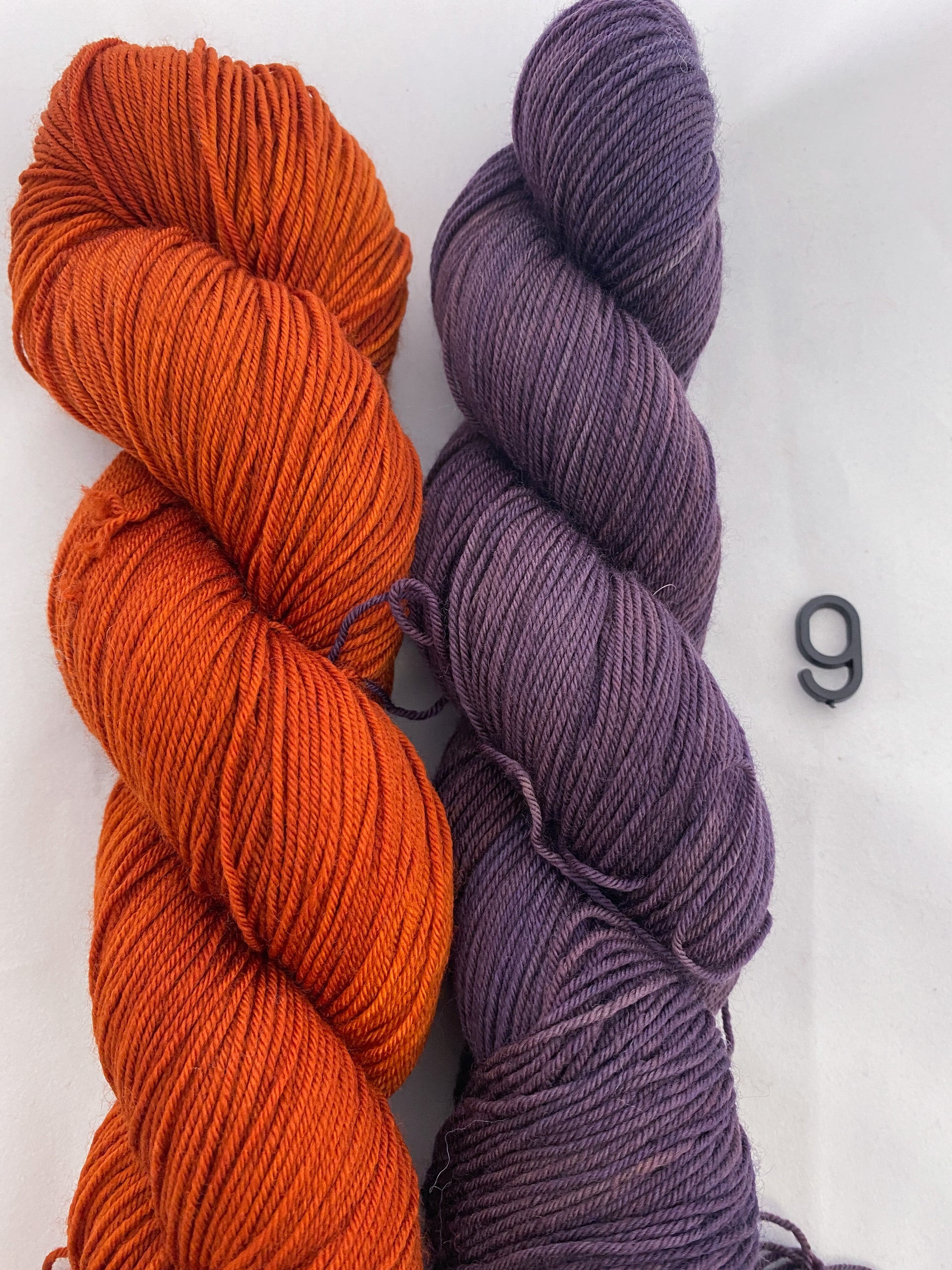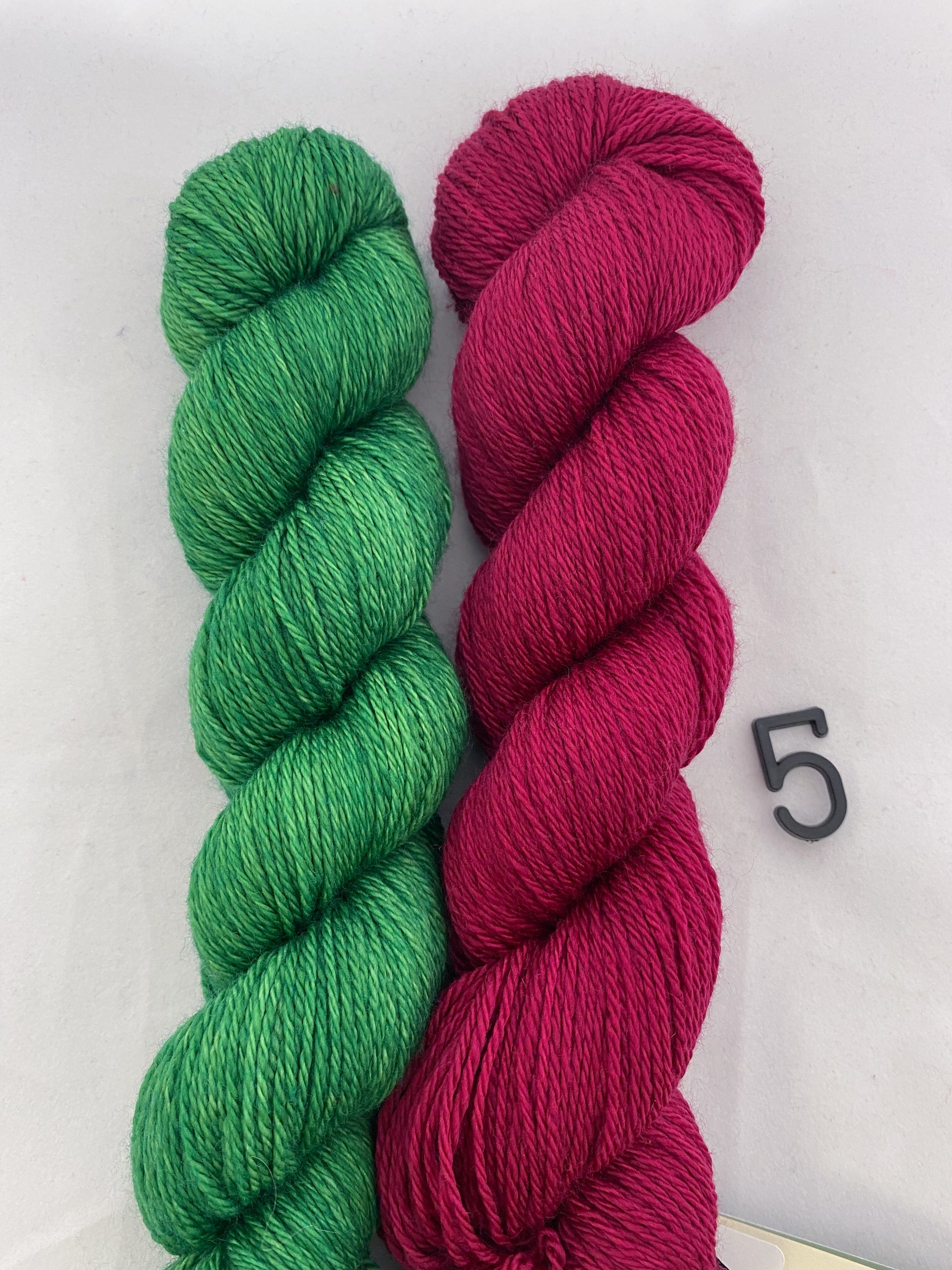 Each shawl set contains 100g each of two colors. Great for the Casapinka 2022 LYS Day pattern (shown below), Power and Parallels, or any other two color shawl pattern.