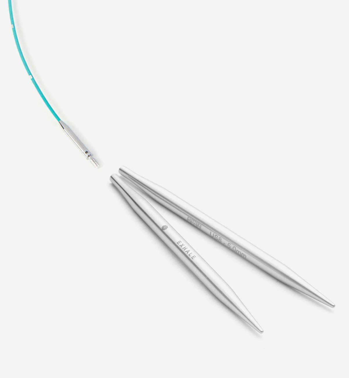 From the Mindful Collection by KnitPro (formerly Knitter's Pride). Crafted of superior grade stainless steel, each pair of finely tipped Interchangeable Circular Knitting needles carries an inspirational word to aid the knitter in mindful concentration. The beautifully engineered join on the Mindful Interchangeable Circular Knitting Needles ensures a snug fit that makes for smooth knitting glide.
