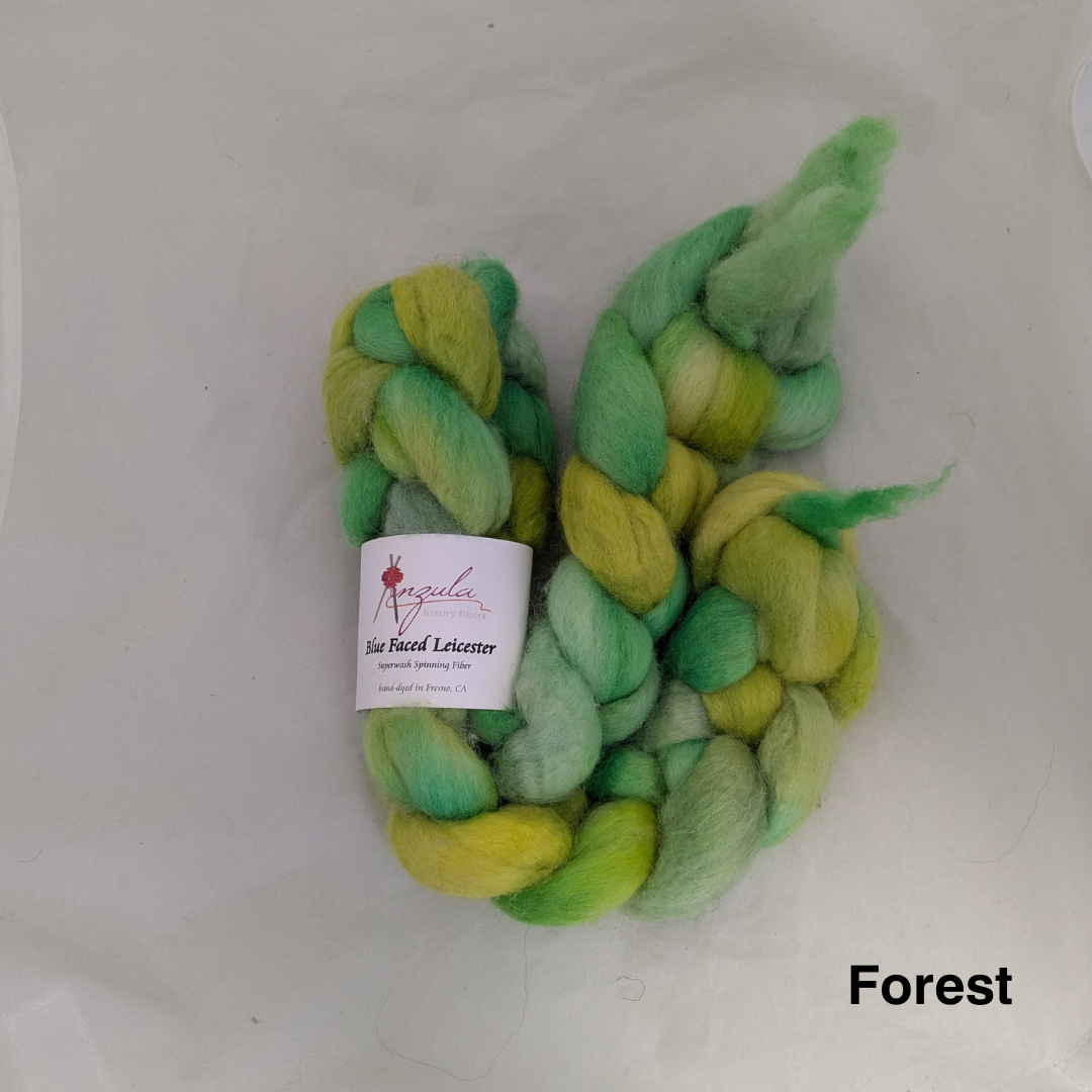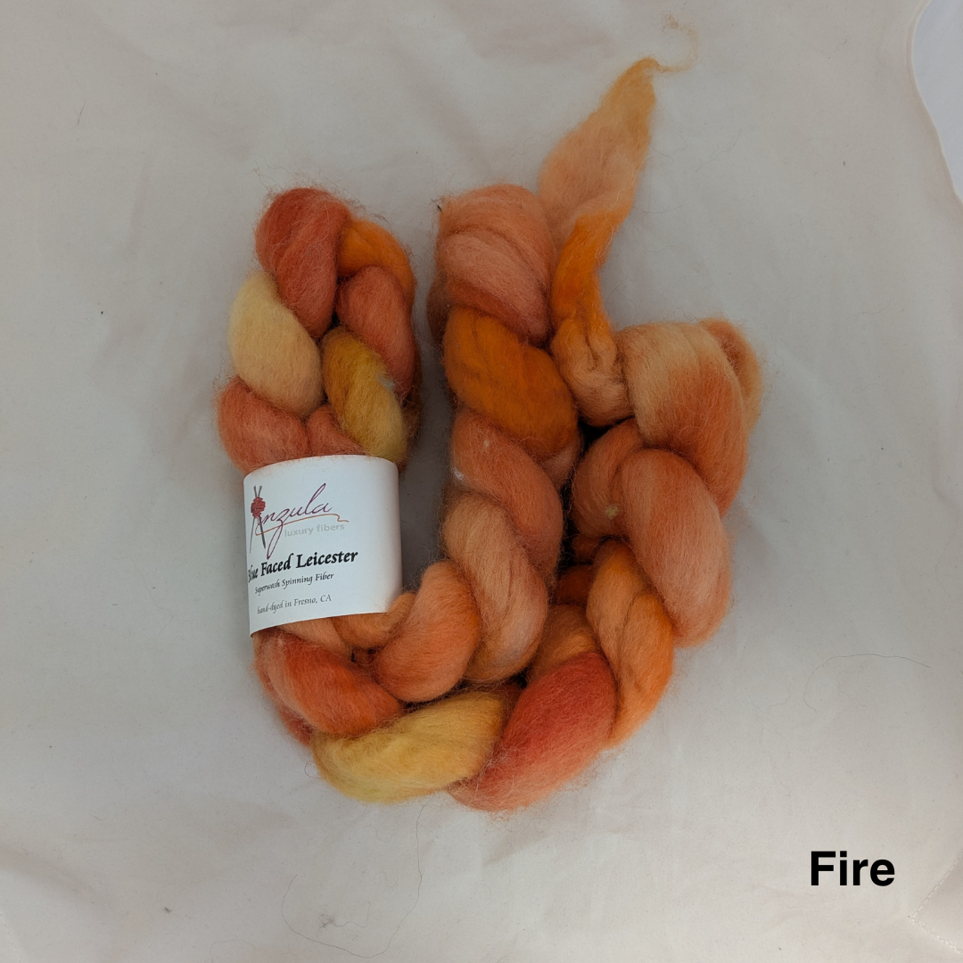 Springy and soft, easy to spin BFL (Blue Faced Leicester) wool fiber. Hand-dyed by Anzula.