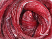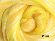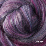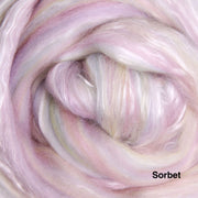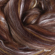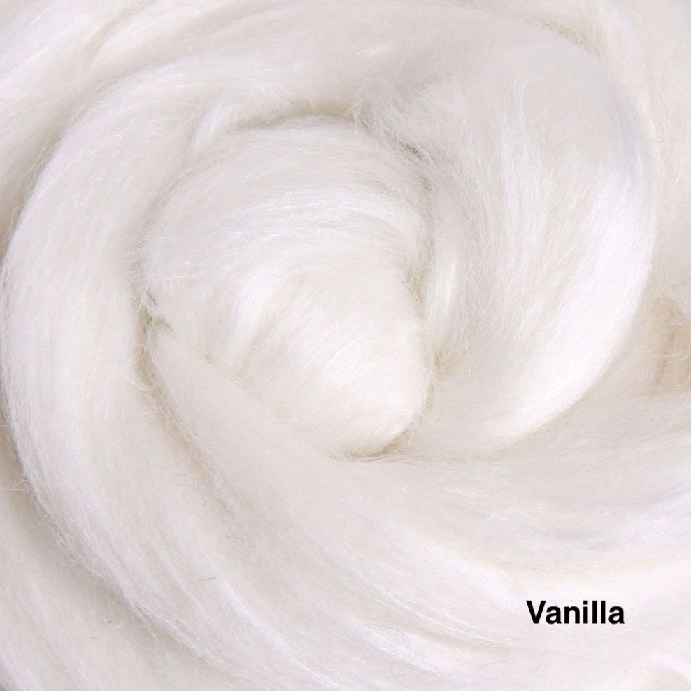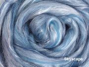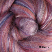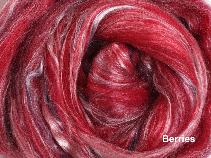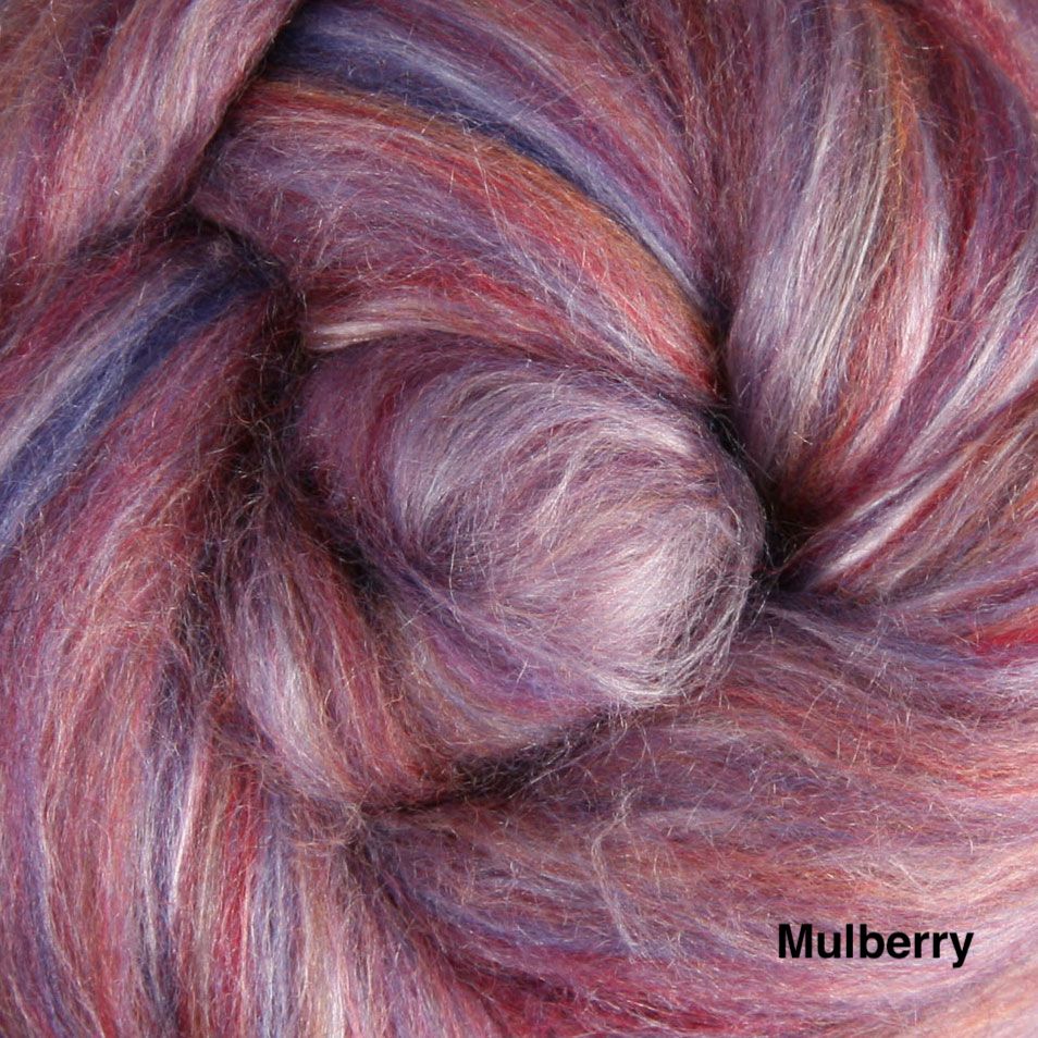 A sumptuous fibre blend of 80% New Zealand merino and 20% Mulberry silk. The fine 22 micron Merino and the luster of the silk makes this a truly luxurious blend. The merino fiber in these packs are from well cared-for, non-museled sheep.