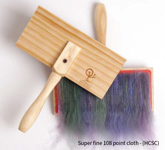 Smaller, lightweight carders with comfortable round handle. Used in pairs to card and prepare your fibres in the traditional way, producing small rolags for spinning.