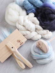 This fantastic new kit from Ashford has everything you need to start learning to spin with a drop spindle. It's also got a great sampling of fibers, so you can experiment, and start to learn about them.