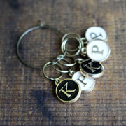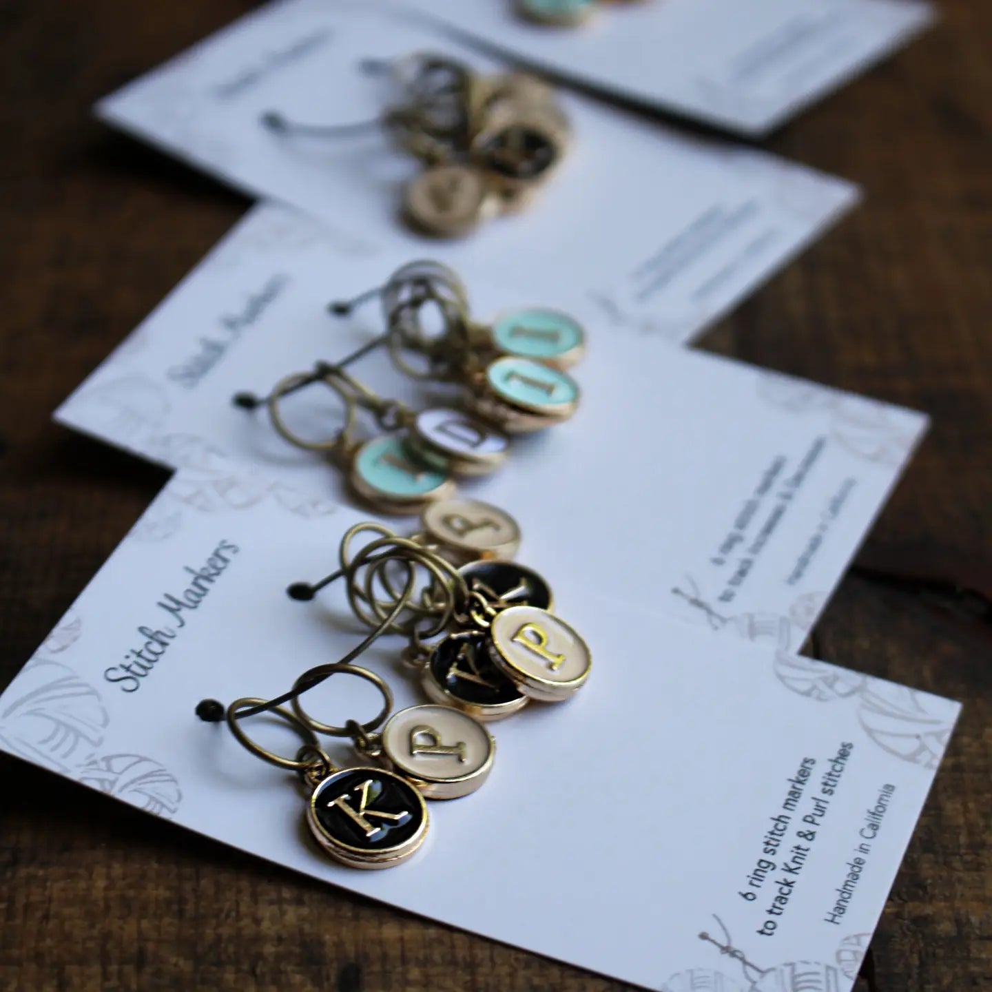 Inspired by vintage typewriter keys, these charming sets are designed to help you keep track of increases and decreases, or knits and purls! Each set consists of 6 ring stitch markers that fit up to a US10 needle.